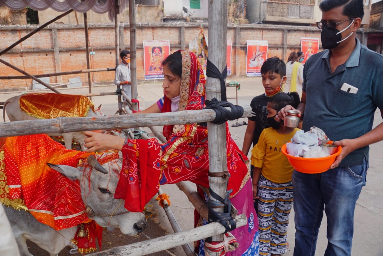 Cows being worshipped on the occasion of ‘Gau Astami’ within the premises of Marwari Club in Cuttack