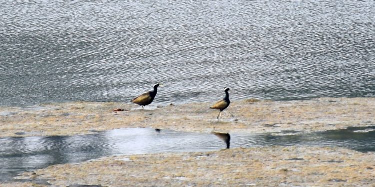 A farmer levelling his field on the outskirts of the city as Dhauli stupa stands faded in background