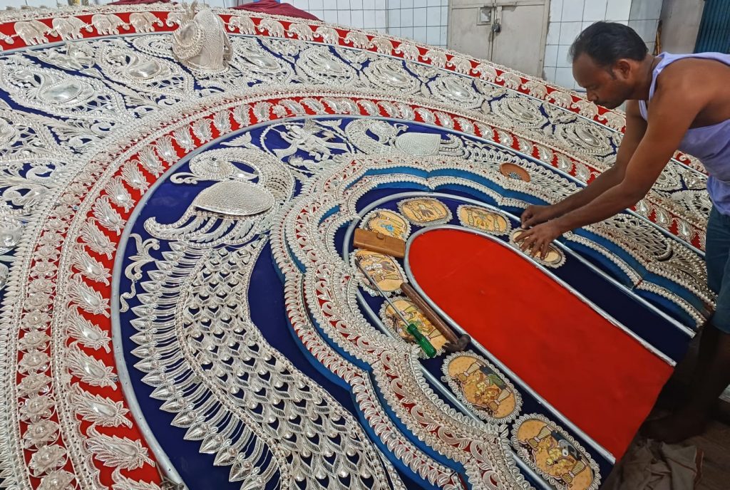Preparations underway at Cuttack Chandinichowk Puja Mandap for Basanti Durga Puja