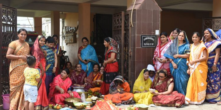 Women worship goddess Mangala on last Tuesday of Chaitra month at Jagannath Nagar in Bhubaneswar