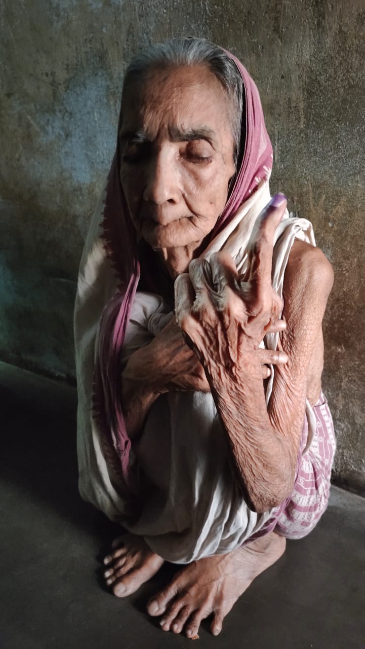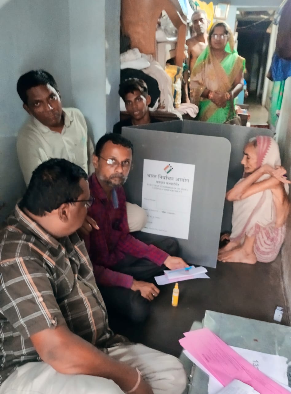 An elderly woman votes from home at Nimakhandi village under Gopalpur Assembly constituency