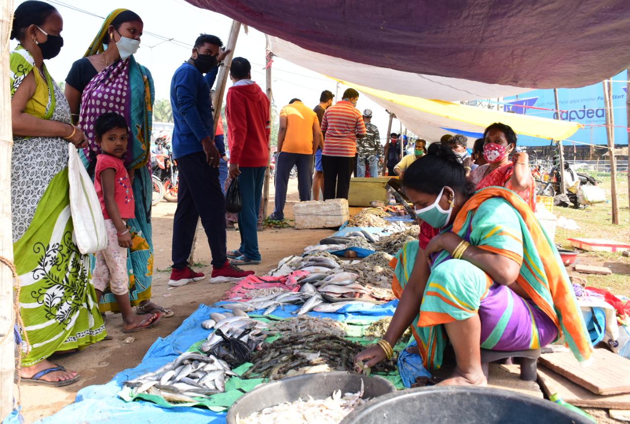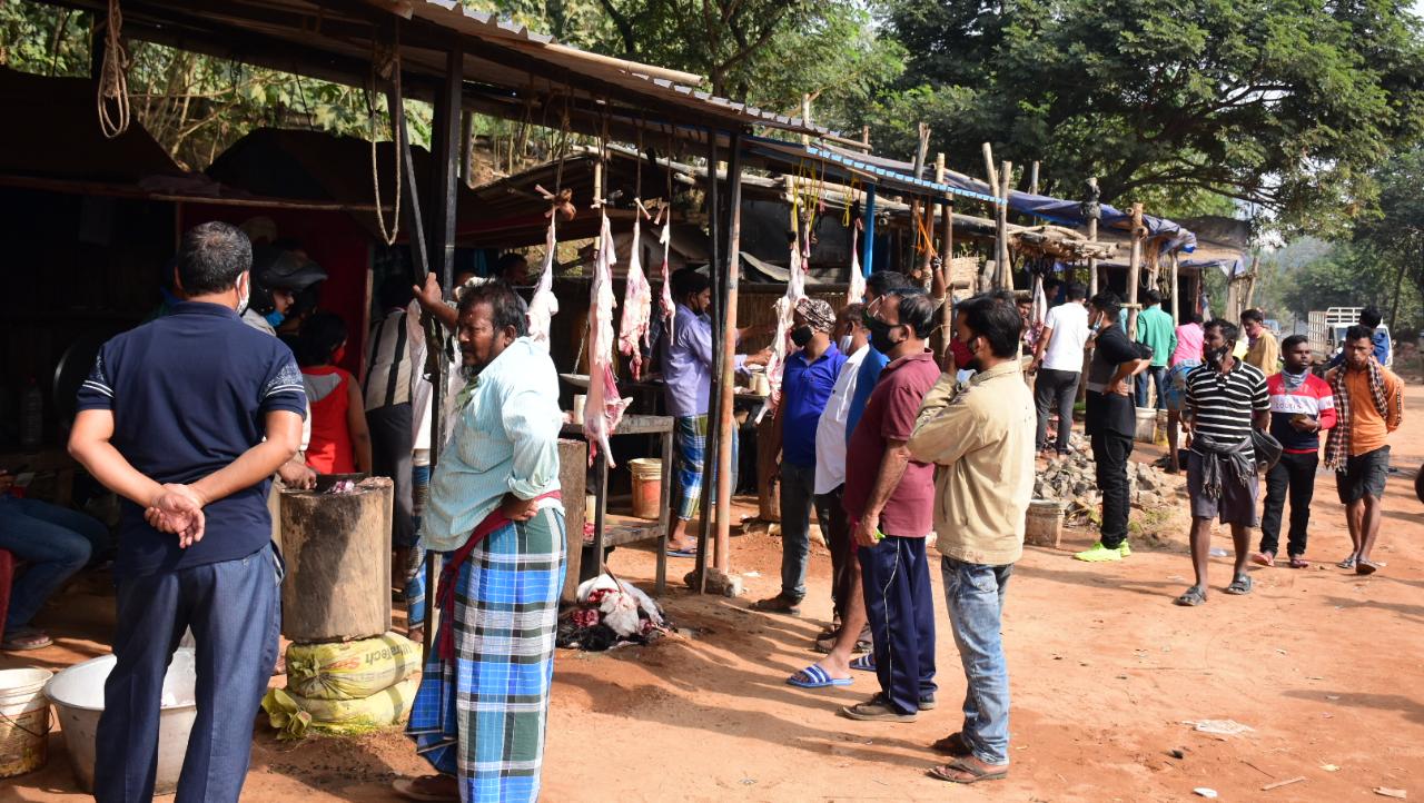Customers line up to buy non-vegetarian food at various markets of Bhubaneswar