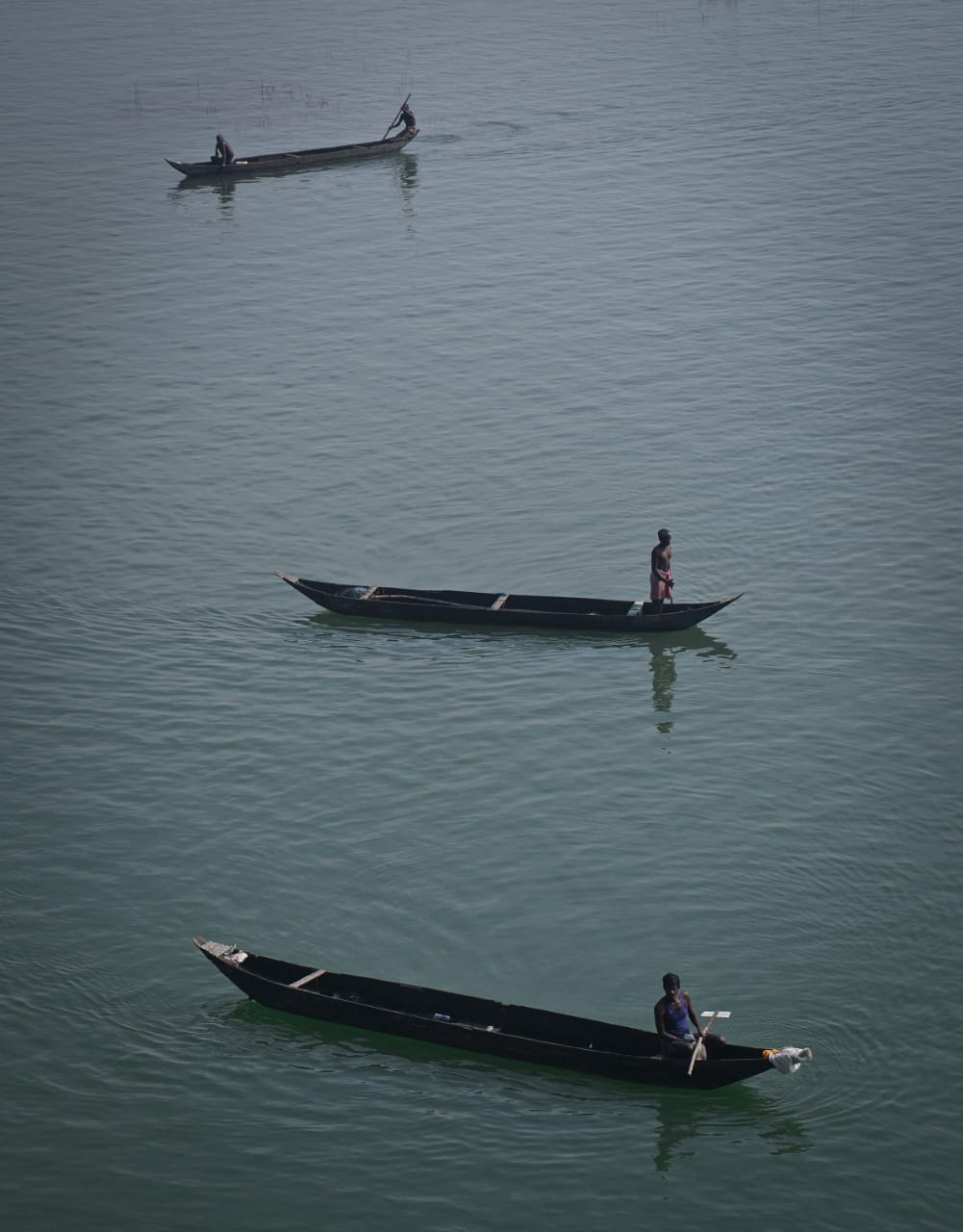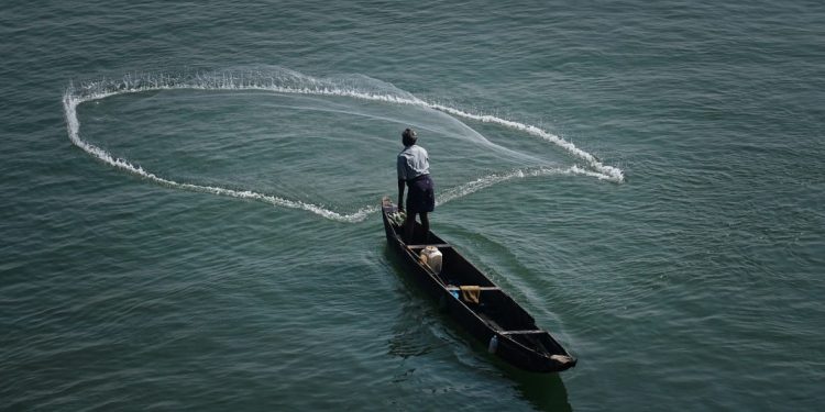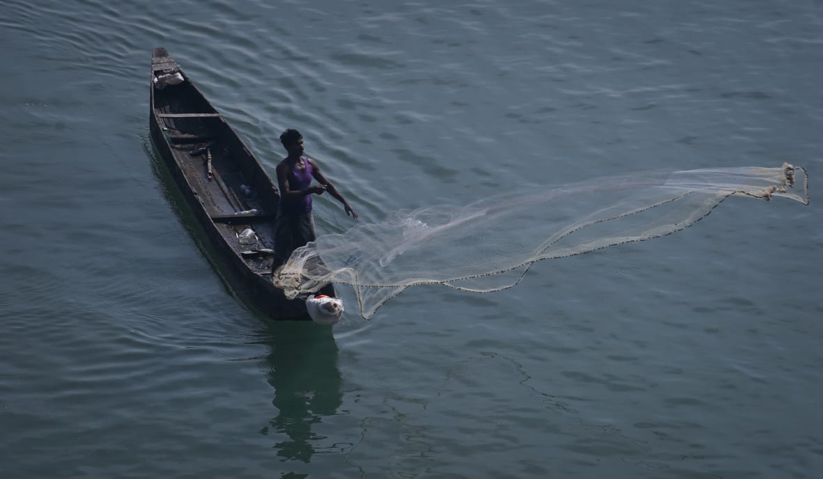 Fishermen catch fish at Naraj anicut in Cuttack