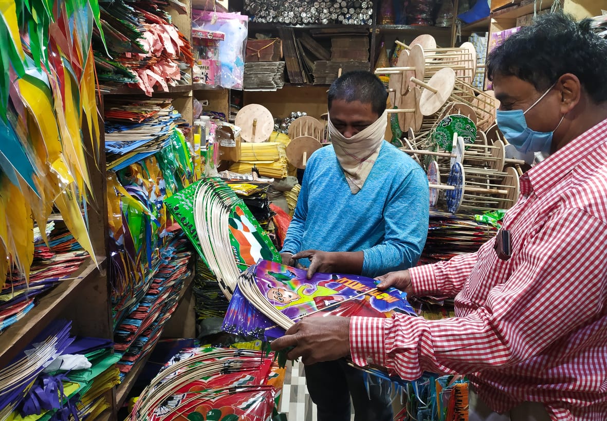 A customer buys kite at Choudhary Bazaar in Cuttack
