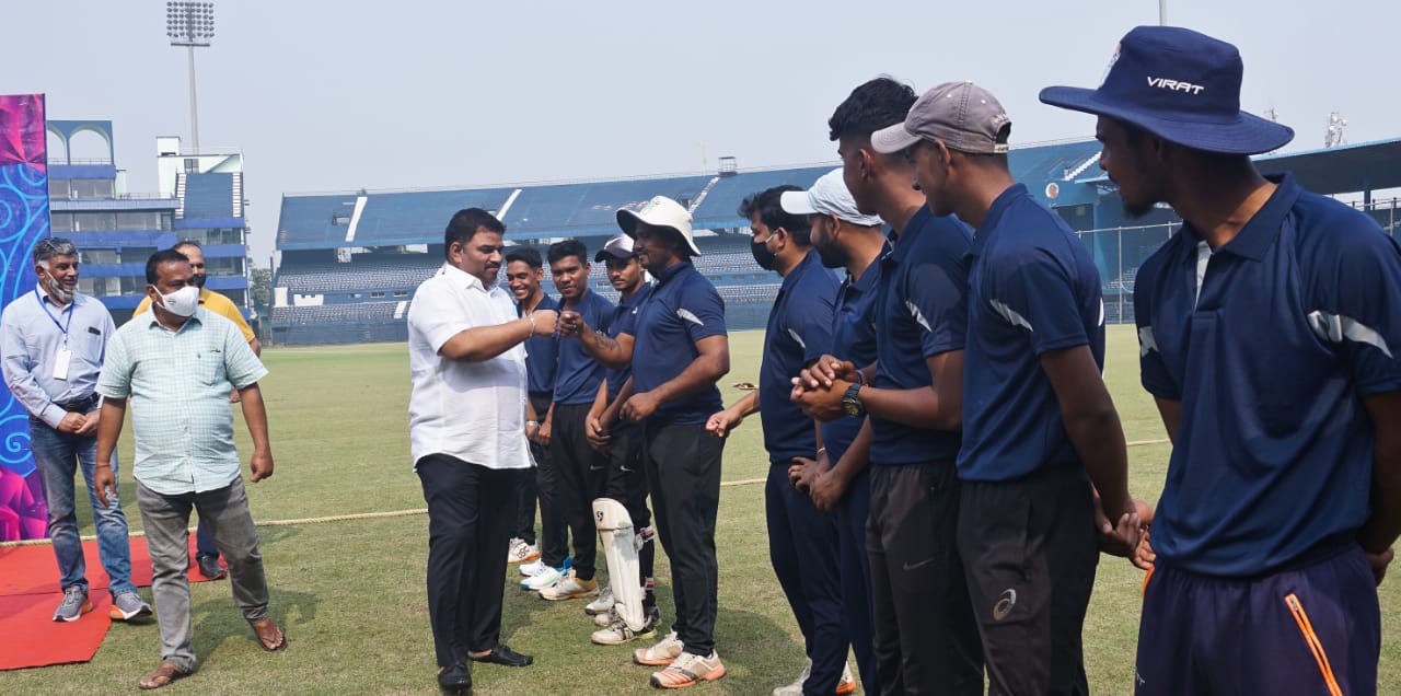 OCA Secretary Sanjaya Behera fist-punching players at the inauguration ceremony of the Inter District Senior Men T-20 League at Barabati stadium in Cuttack