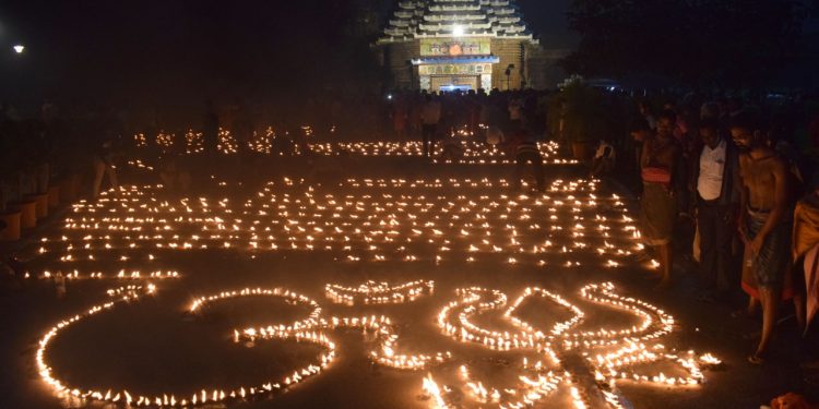 Devotees light candles to mark the passage of the Special Lingaraj Temple Act in the Odisha Assembly