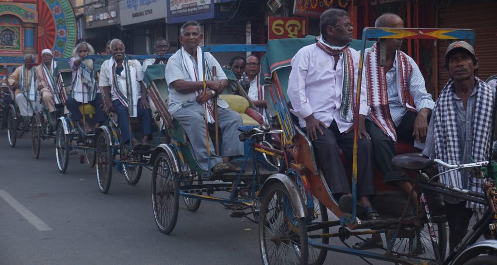 Farmers harvest paddy on outskirts of Bhubaneswar