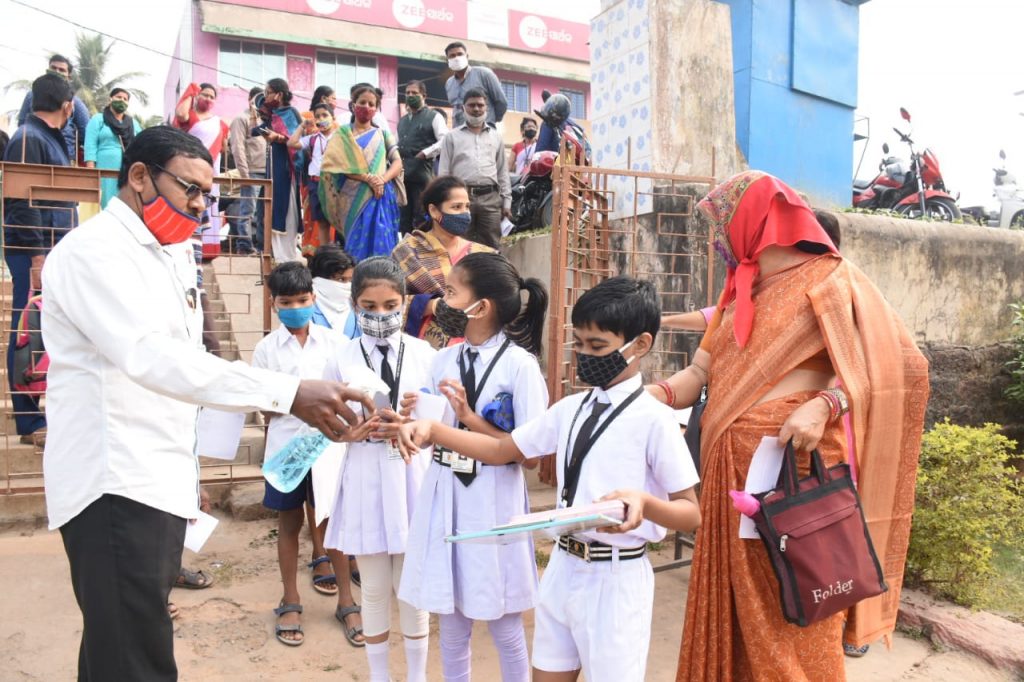 Kids gather at Hansapala UP School near Bhubaneswar for Class-III scholarship test