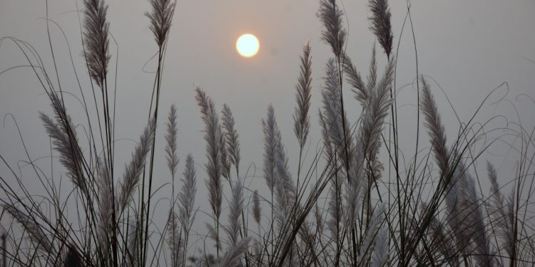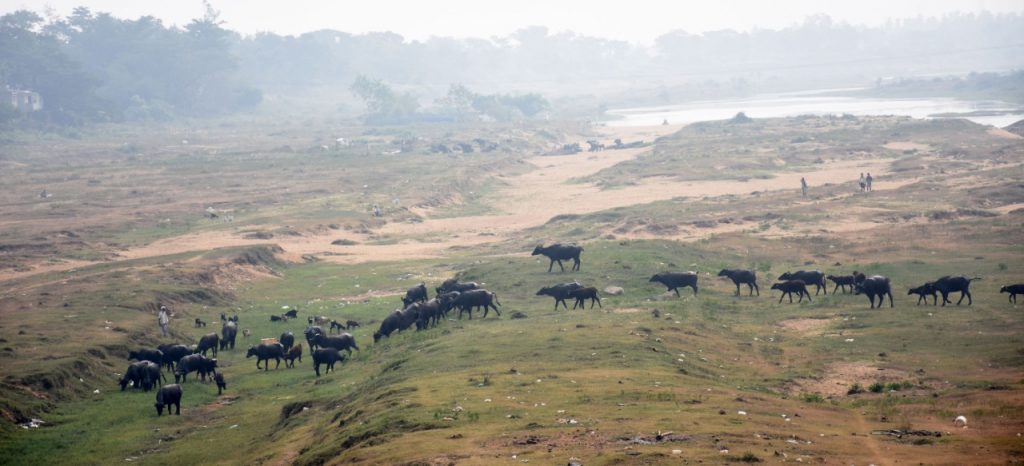 Buffaloes graze at Kuakhai riverbed at Balianta