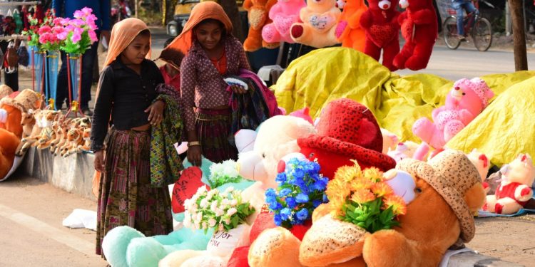 Xmas fever: Soft toys lined up for sale in Nayapalli market of the capital city