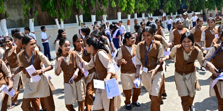 Students exit exam centres with relieved faces after completing Class-X board exams