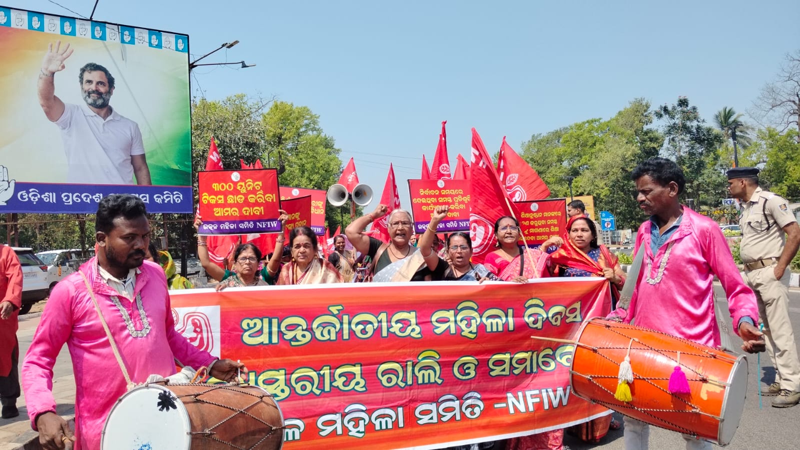 On International Women’s Day, workers of Odisha Pradesh Chattra Congress take out rally at Mahatma Gandhi Marg in Bhubaneswar