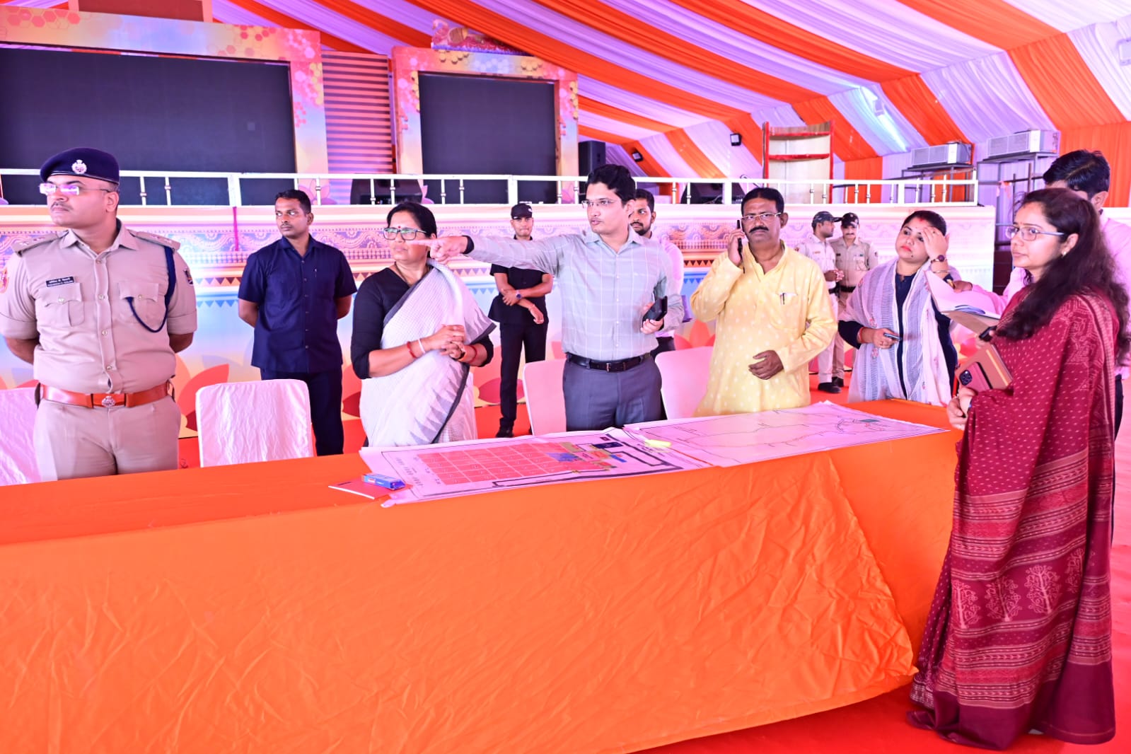 Odisha Deputy Chief Minister Pravati Parida reviews preparations at Bali Jatra lower ground in Cuttack for launch of Ayushman Bharat Yojana