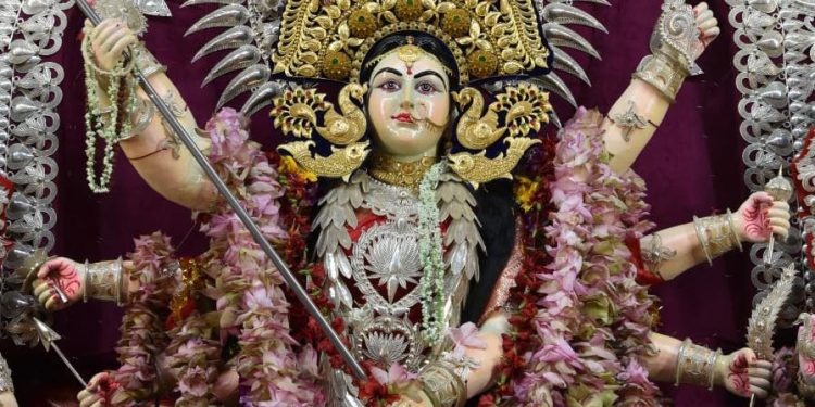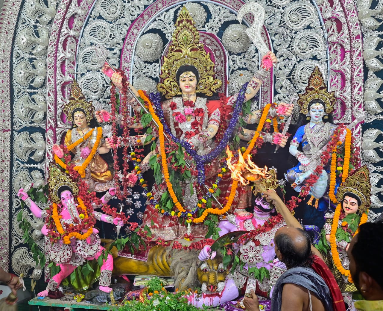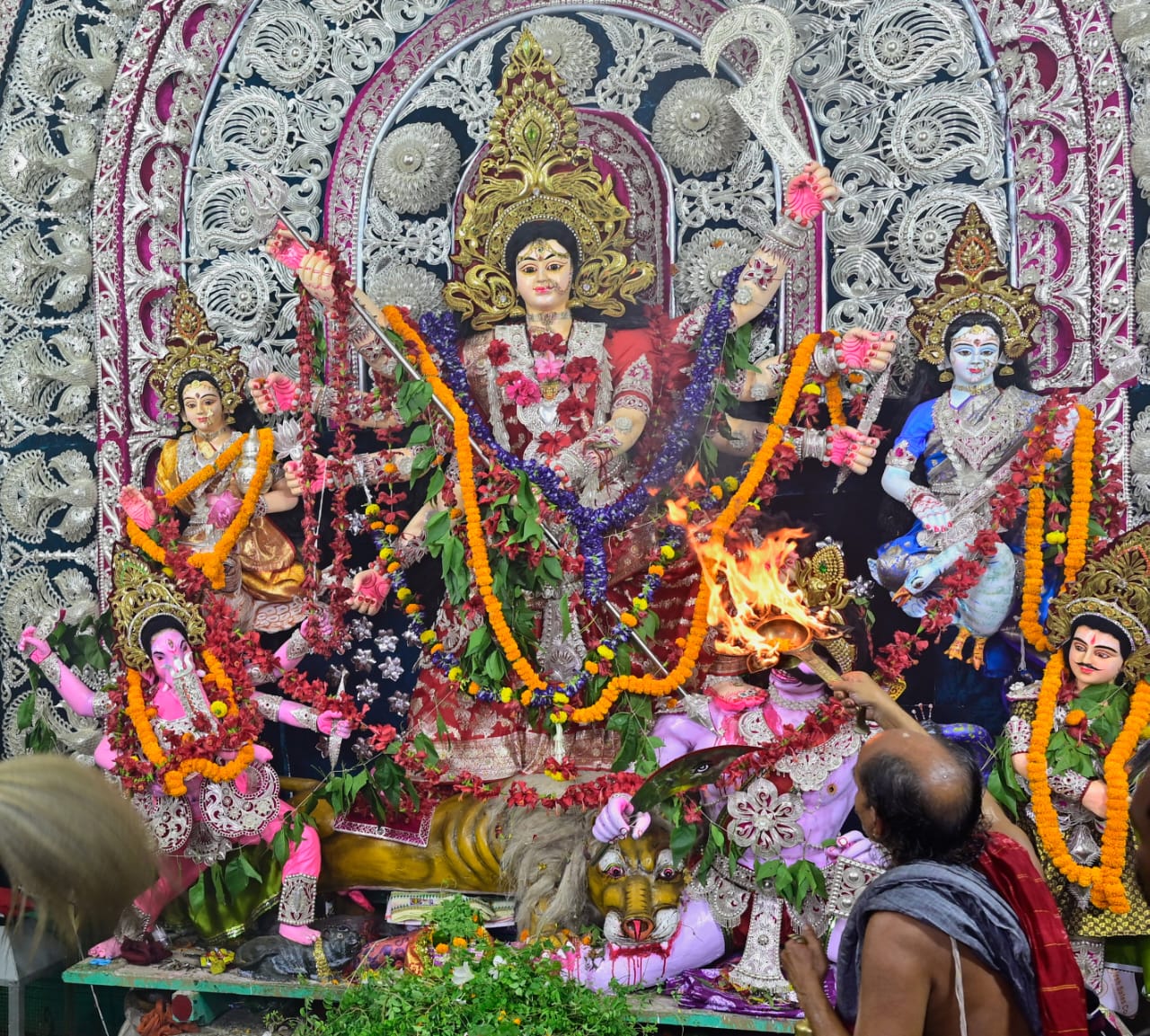 Devotees witness Maha Alati at Sheikh Bazar Puja Mandap in Cuttack on Dussehra