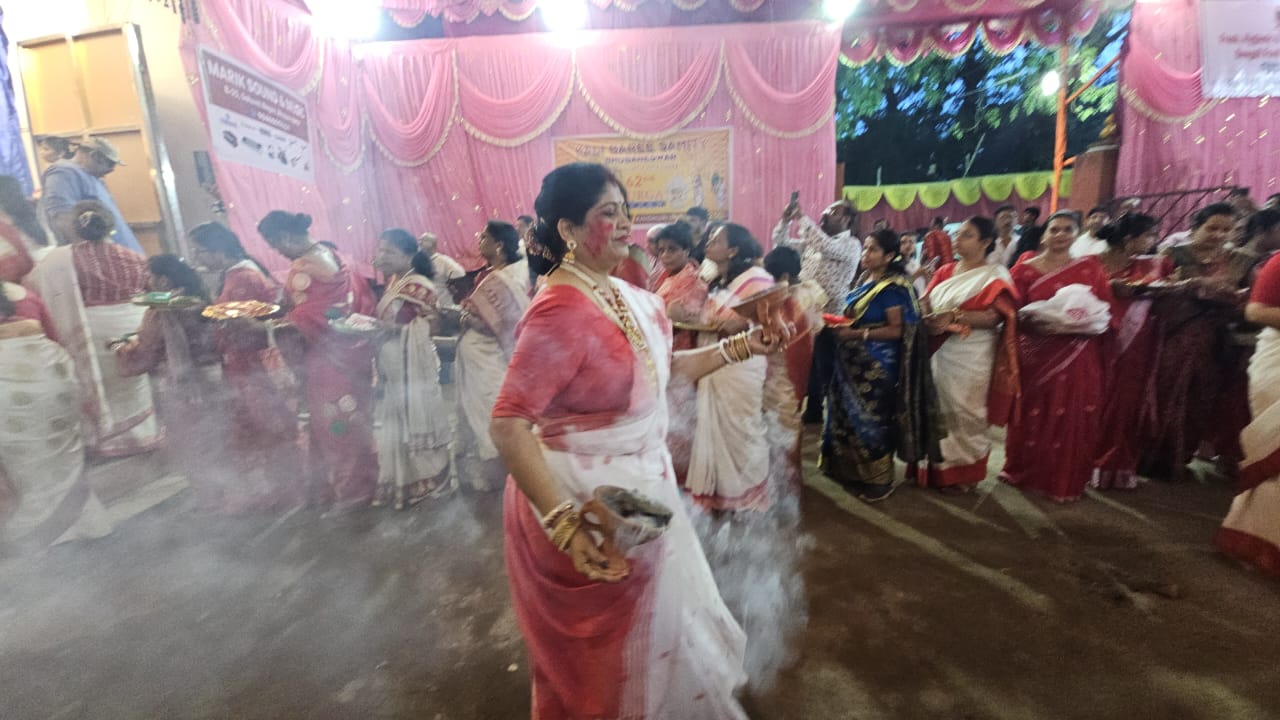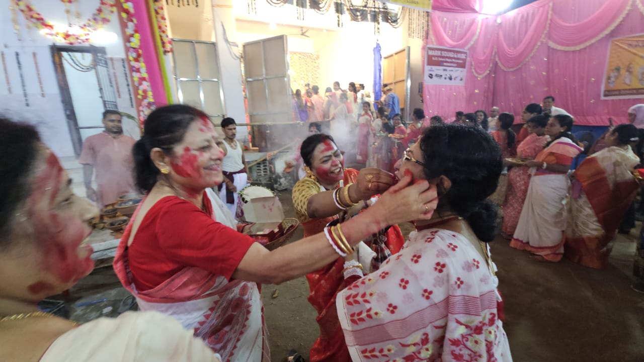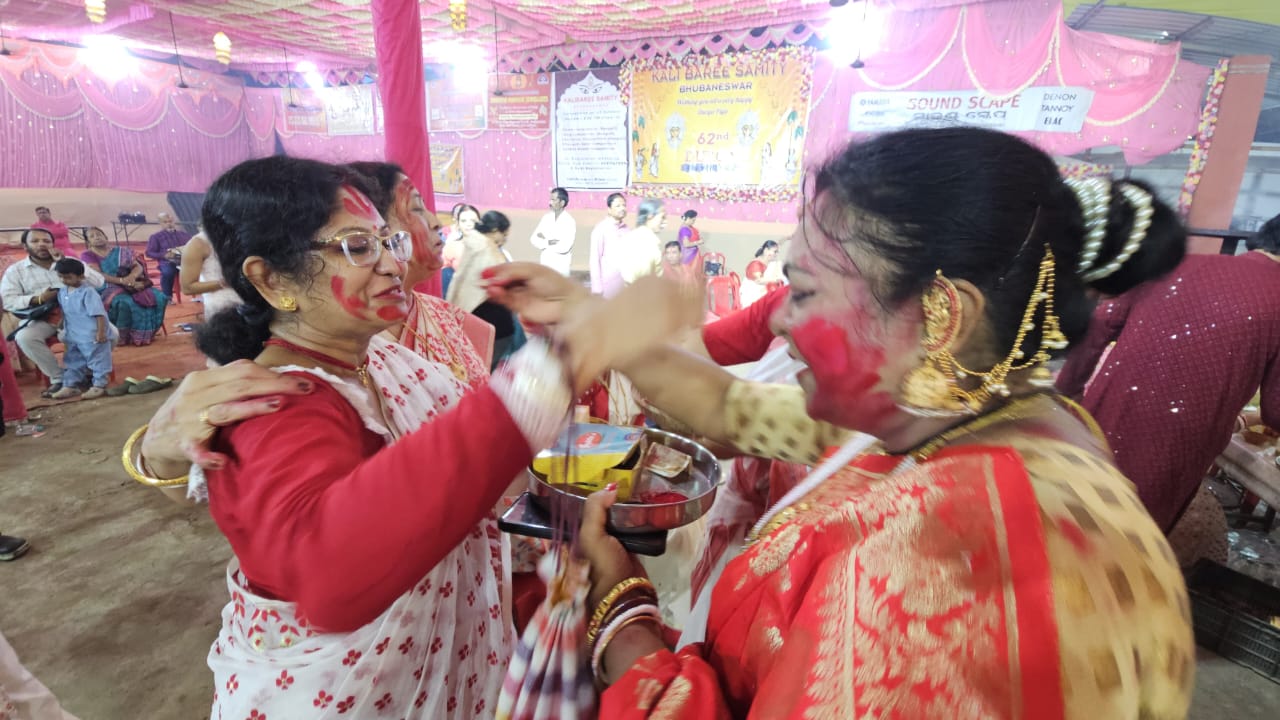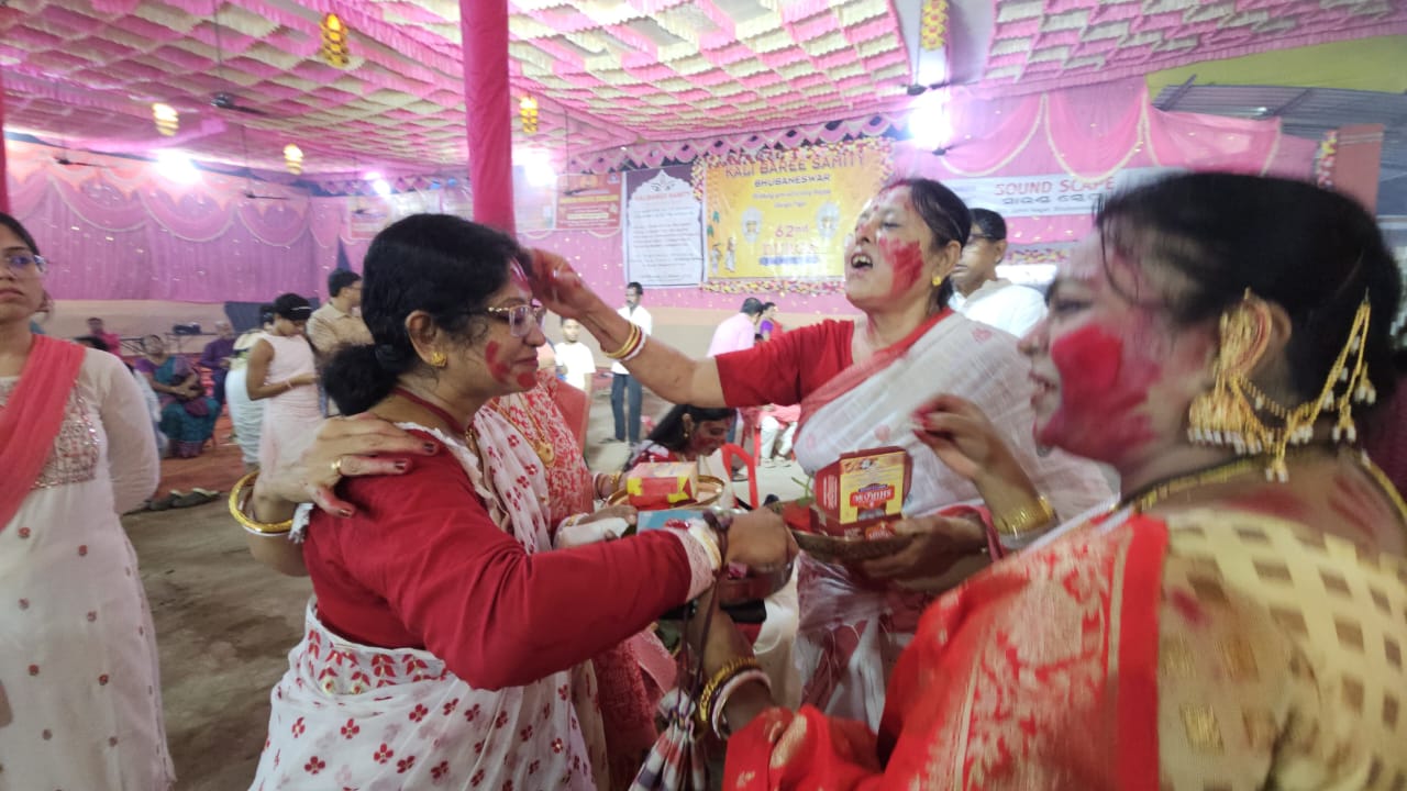 Bengali women play sindoor khela at Ashok Nagar Kalibari in Bhubaneswar