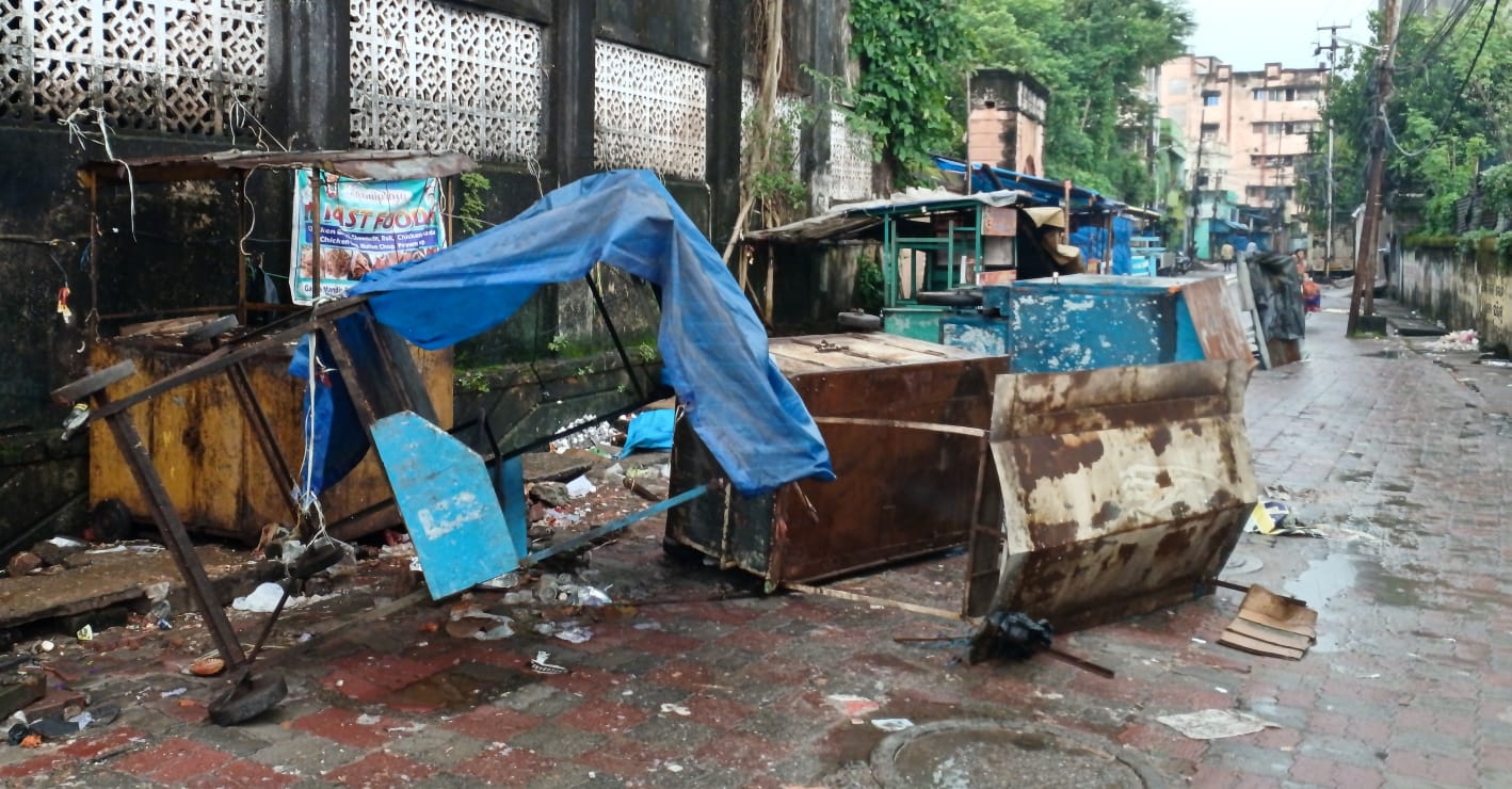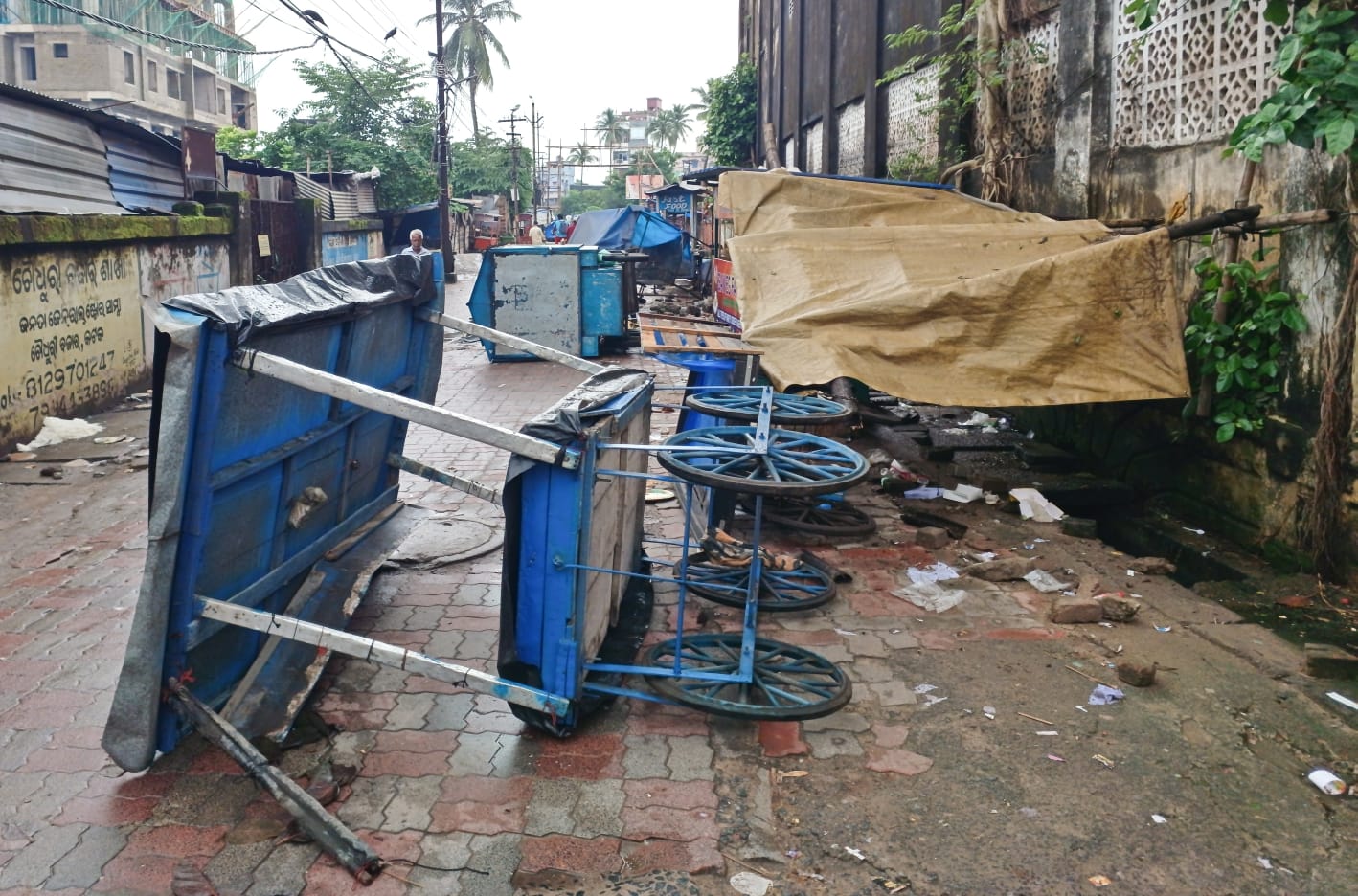 Carts of roadside vendors lie overturned near Gouri Shankar Park in Cuttack