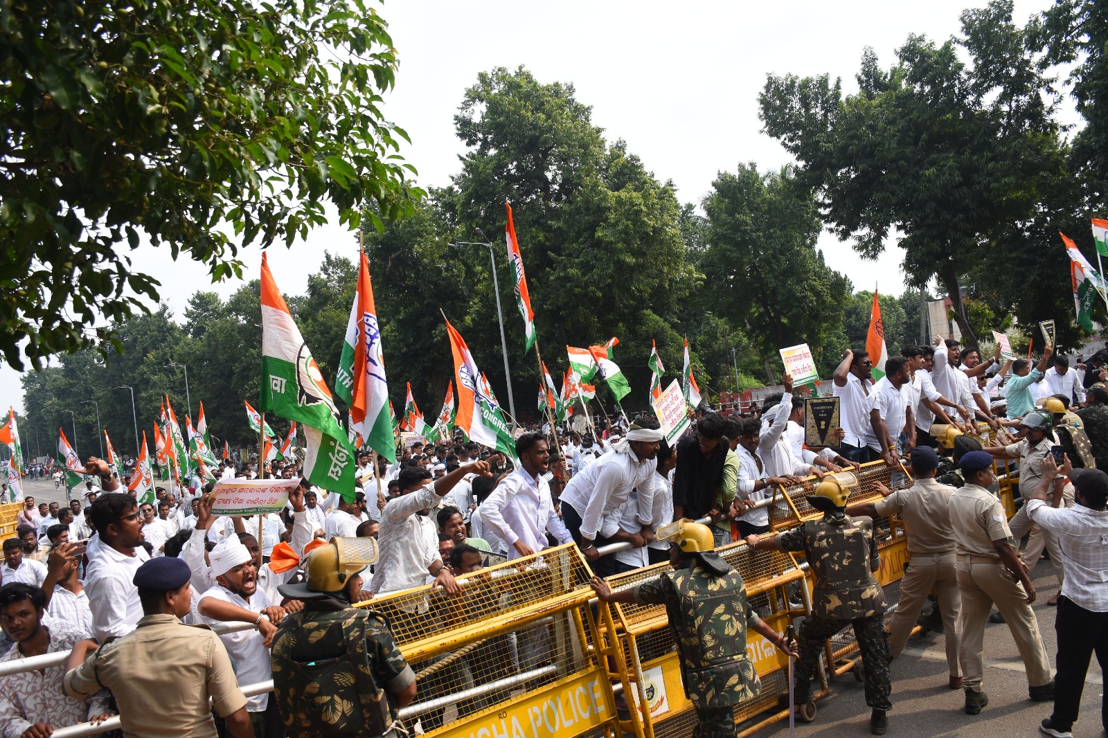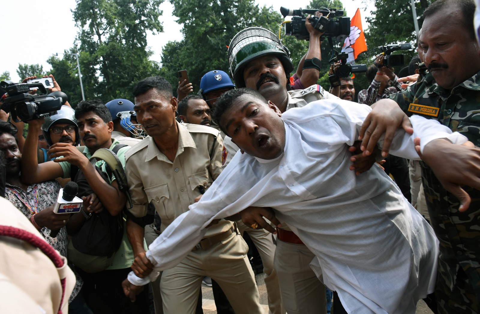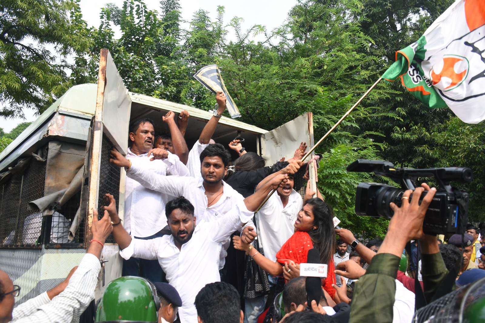 Police detain Indian Youth Congress members in Bhubaneswar during Assembly gherao protest against alleged vote theft, job scam