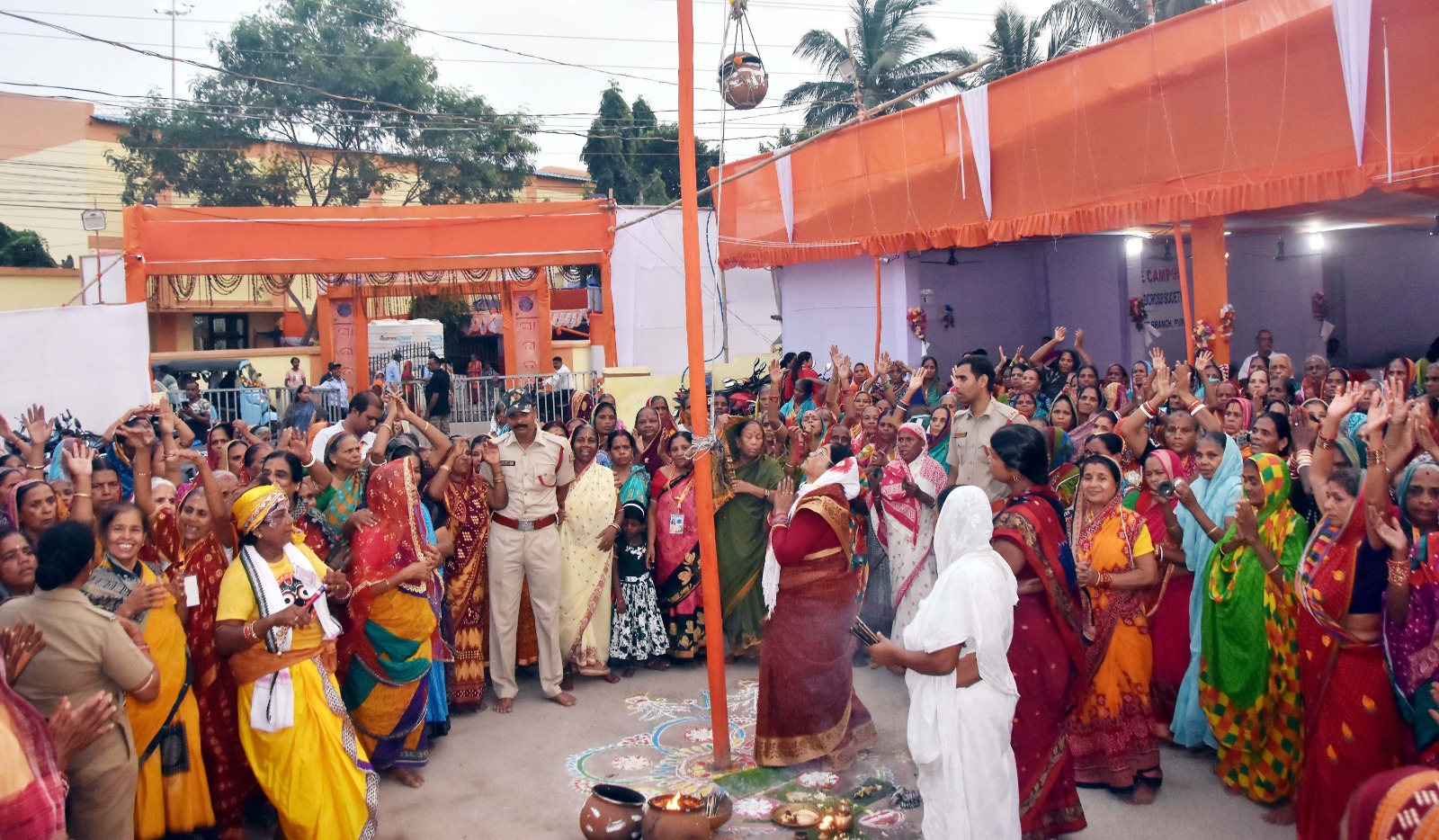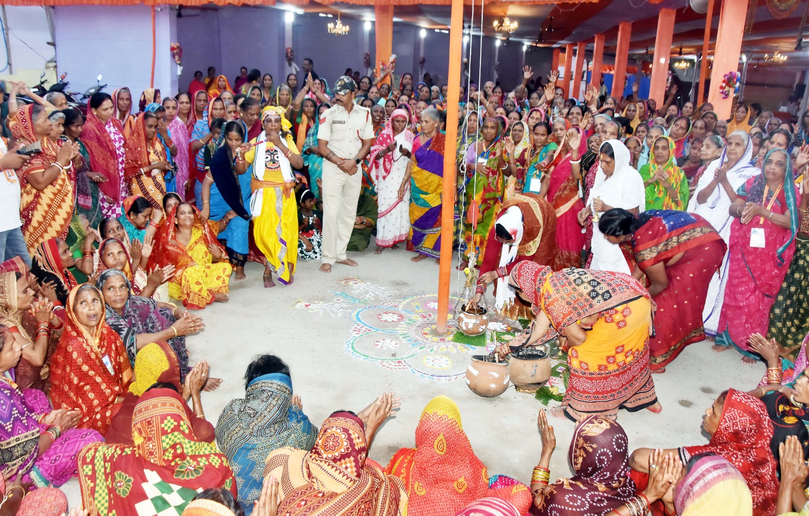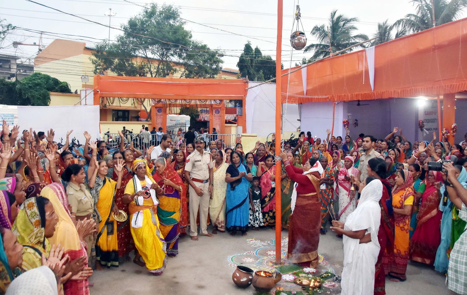Devotees light sky lamps at Station Kalyana Mandapa Habisyali Kendra in Puri