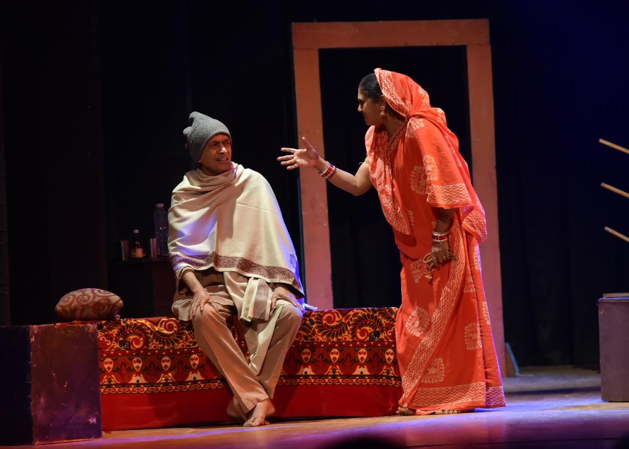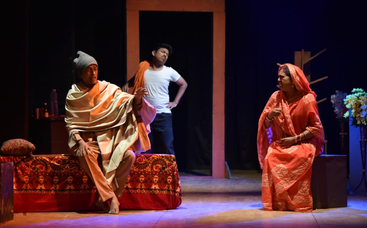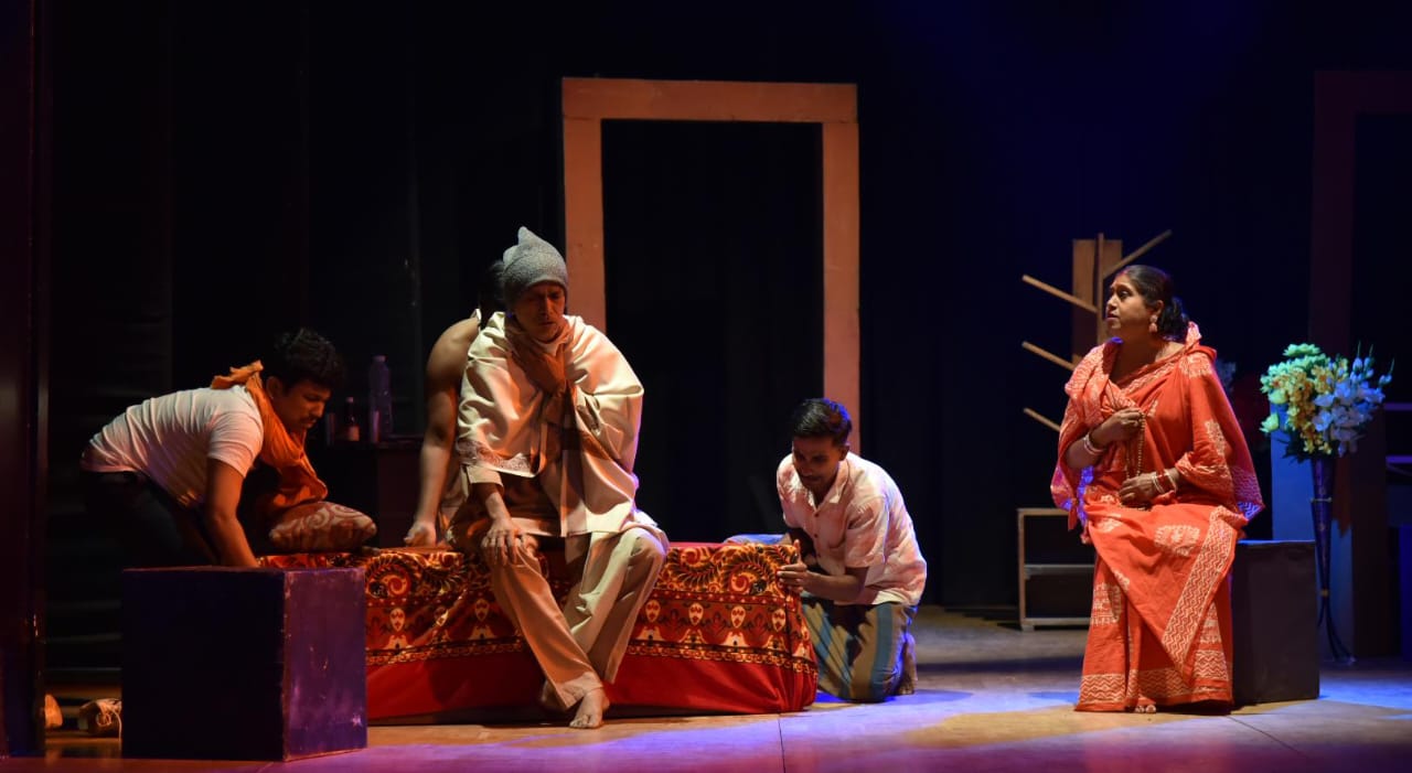 Members of Uttar Purush perform the Odia play No Expiry at Bhanjakala Mandap Wednesday, celebrating Asim Basu’s 93rd birth anniversary