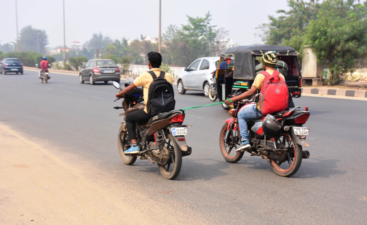 A battery of herons flying above the Mahanadi in Cuttack amid light fog