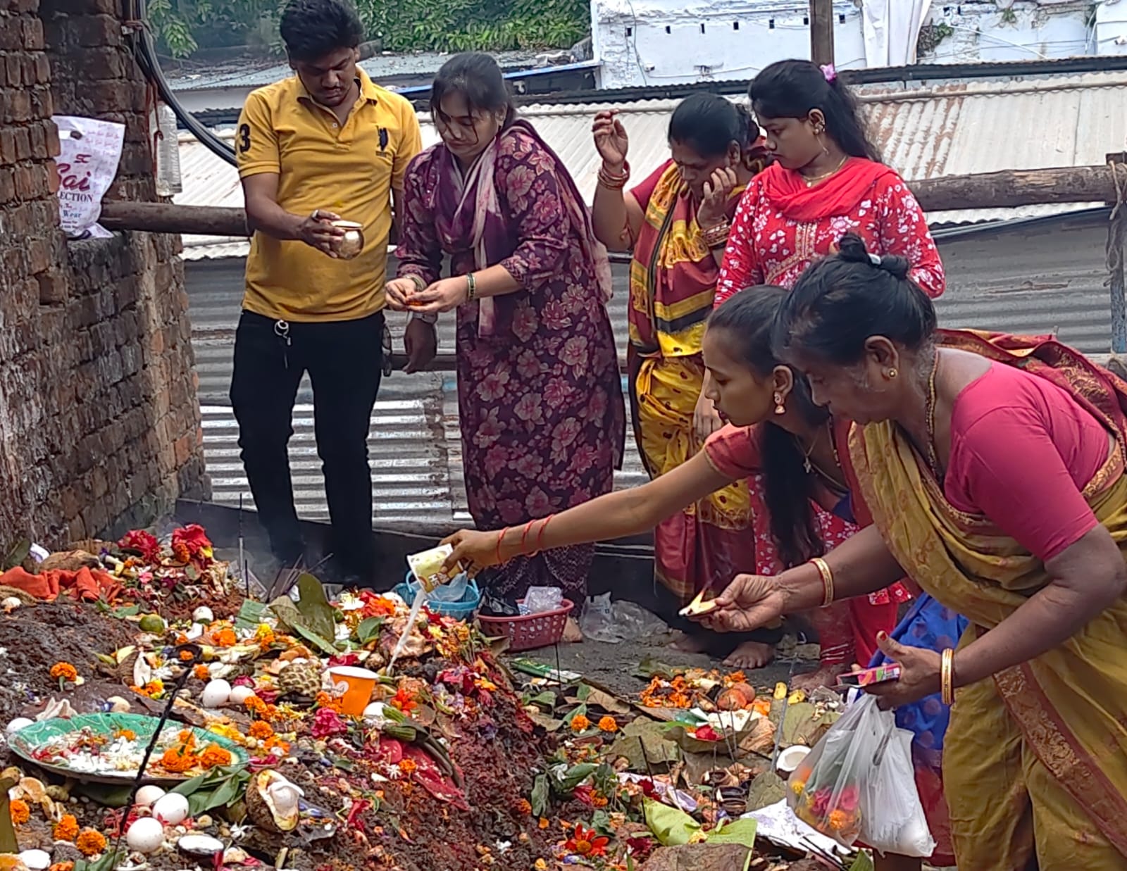 Devotees offer milk, eggs to termite mound at Ramalingeswara temple in Berhampur on Naguni Chaturthi