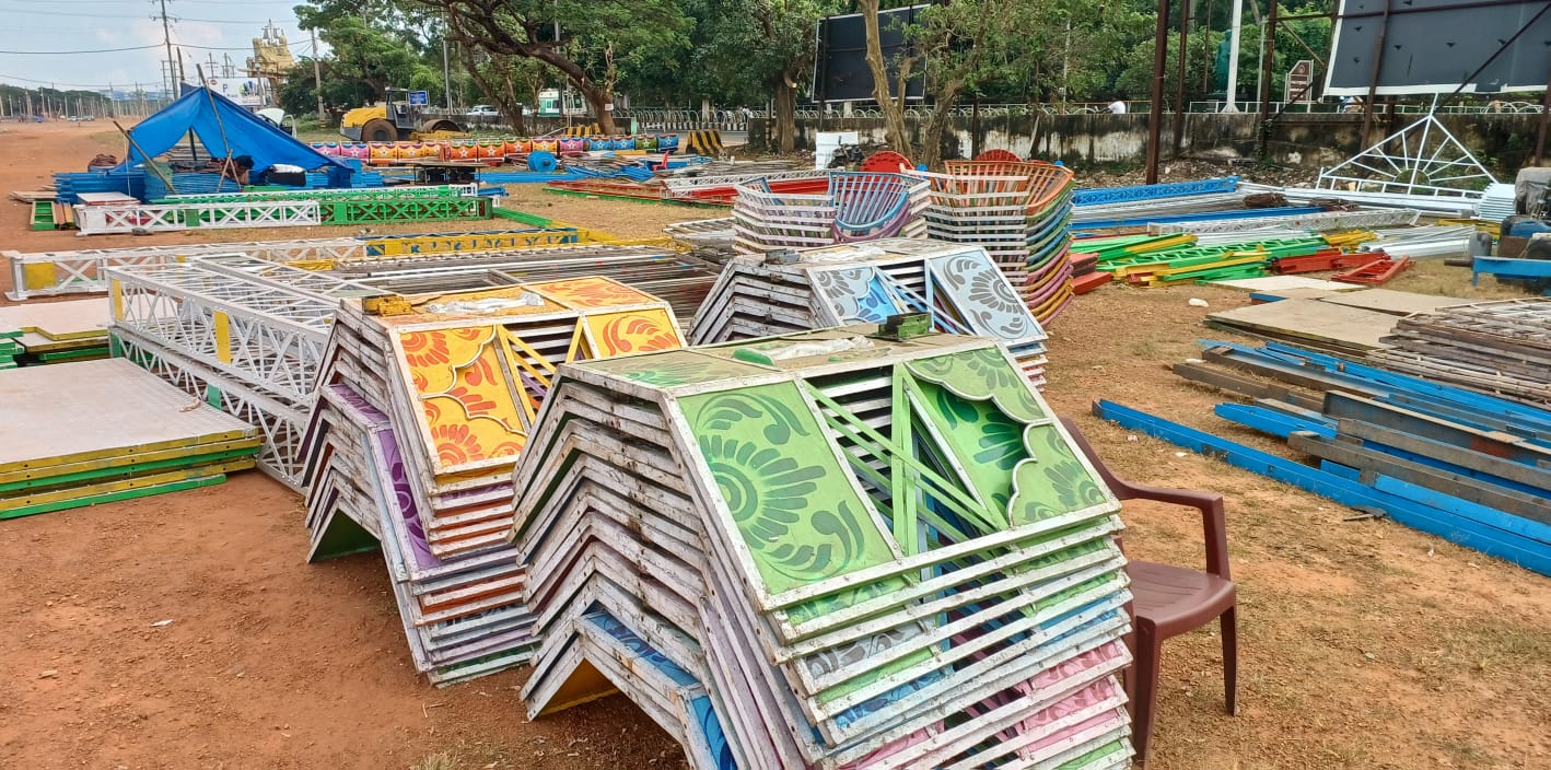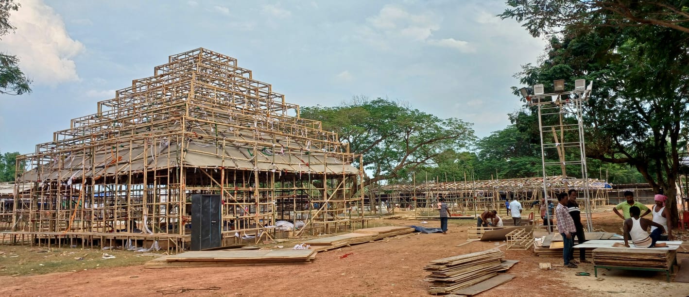 Construction work underway for ORMAS stalls, amusement rides at Lower Ground in Cuttack ahead of Bali Jatra