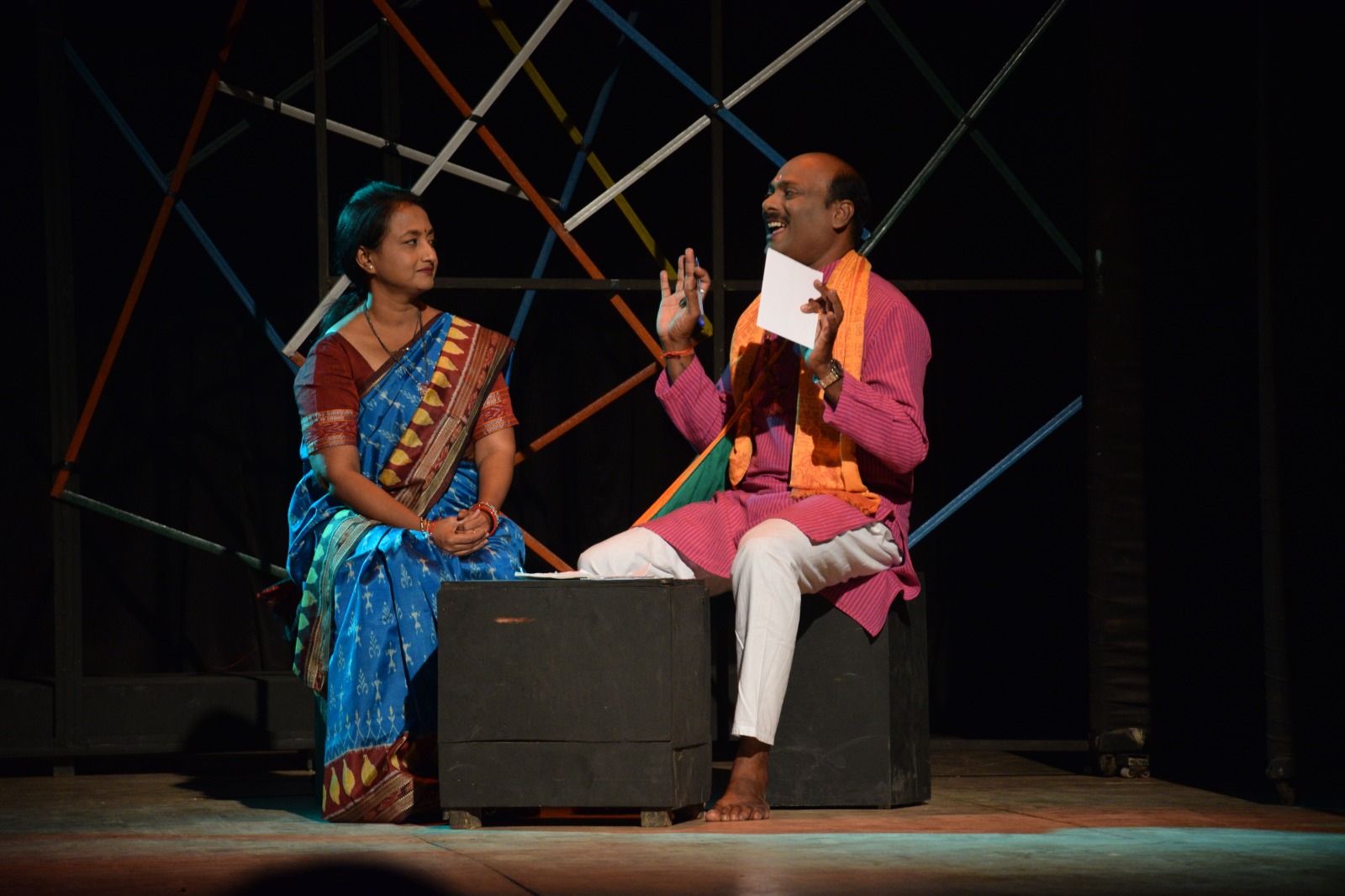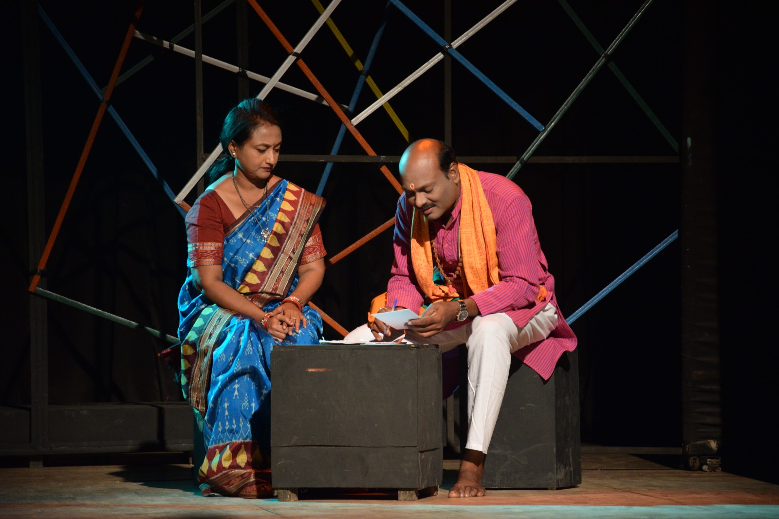 Actors perform on stage at Bhanja Kala Mandap in Bhubaneswar