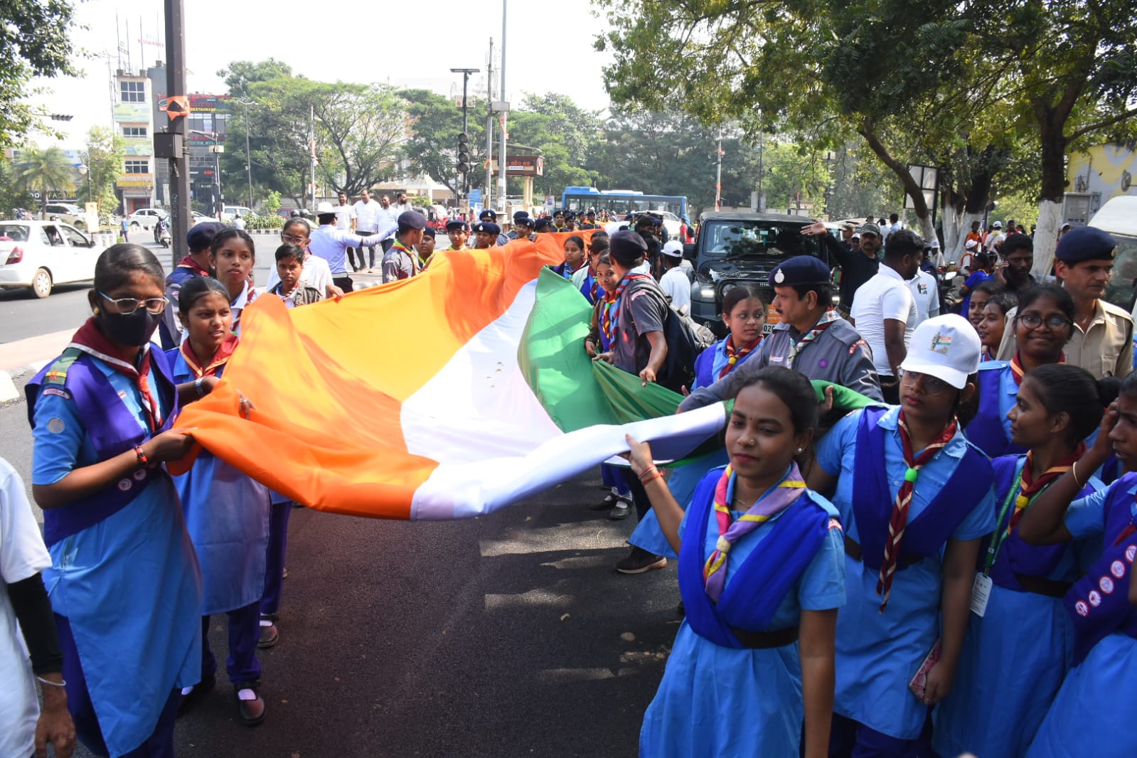 Odisha Sports Department marks Sardar Vallabhbhai Patel’s 150th birth anniversary with ‘Ekata Padyatra’ in front of the Ram Temple in Bhubaneswar