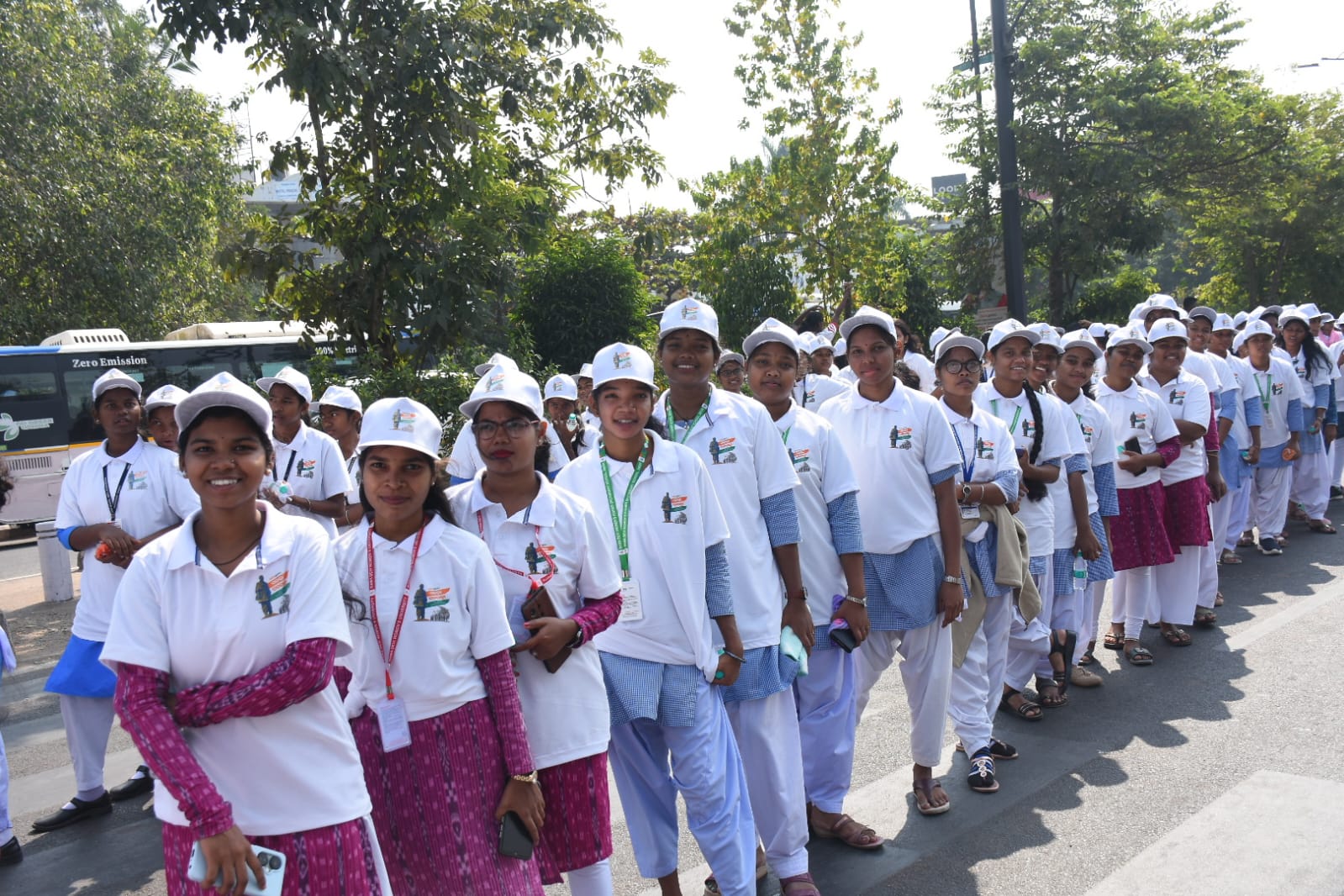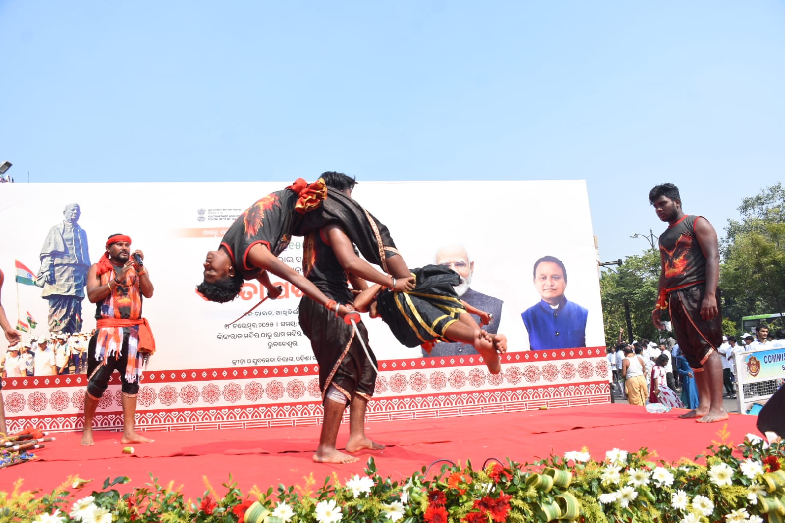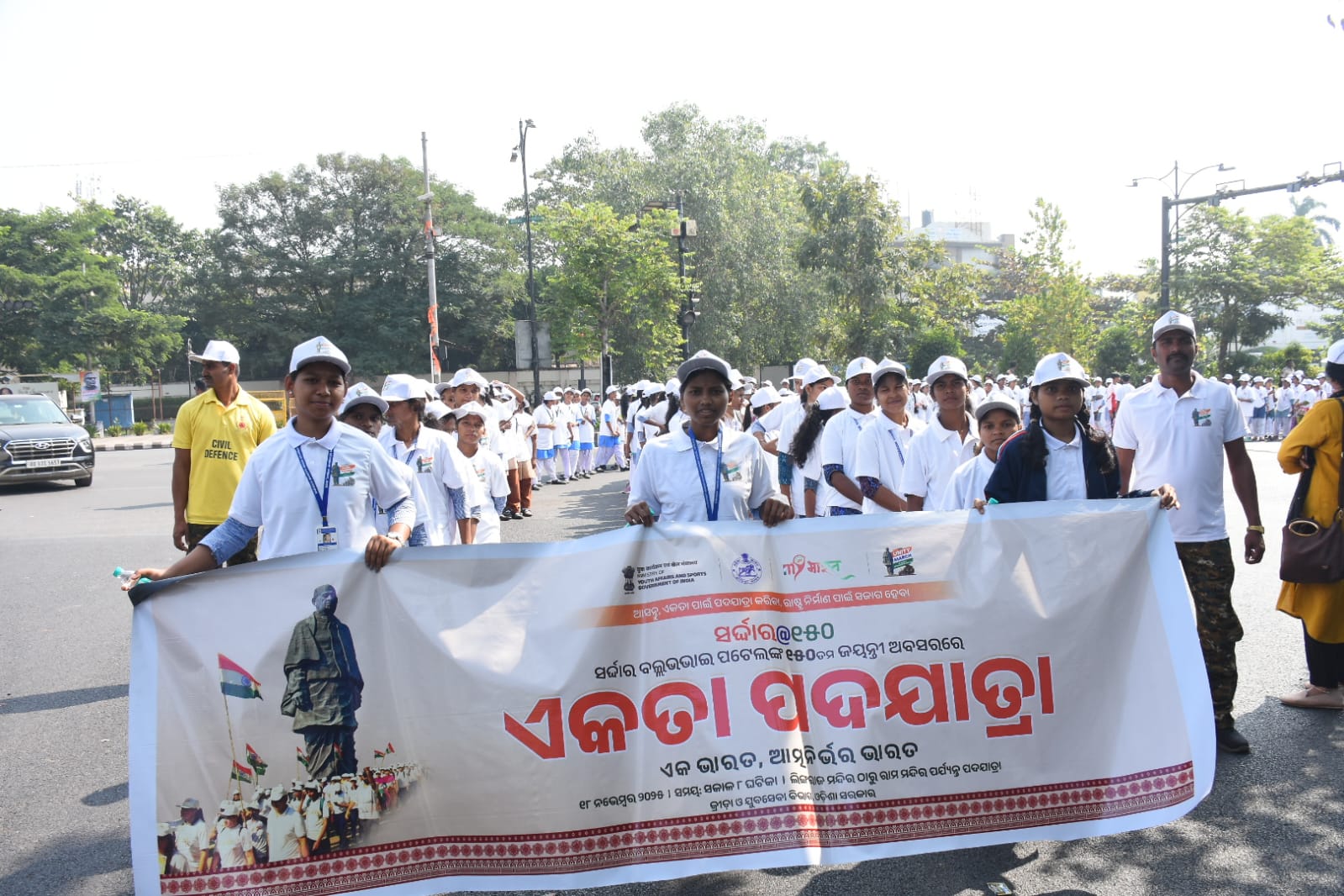 Odisha Sports Department marks Sardar Vallabhbhai Patel’s 150th birth anniversary with ‘Ekata Padyatra’ in front of the Ram Temple in Bhubaneswar