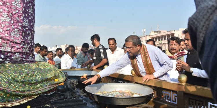 After steering BJP to its Bihar Assembly election victory as party’s election in-charge, Union Education Minister Dharmendra Pradhan visits Puri Srimandir to offer prayers