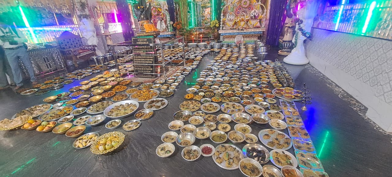 On the occasion of Byanjan Dwadashi, 875 varieties of dishes were offered to Lord Jagannath at the Gaurabihar Mata Matha in Puri
