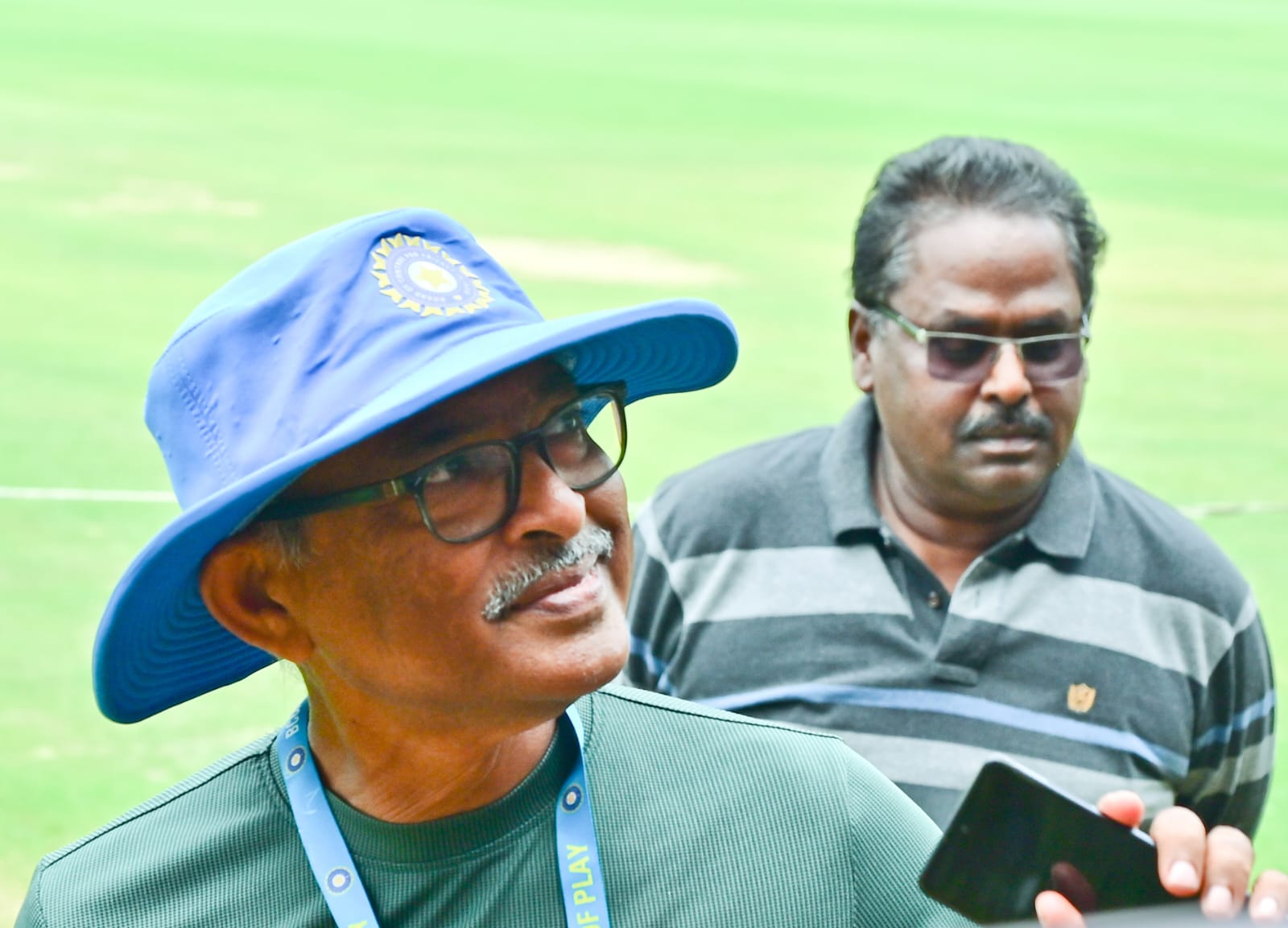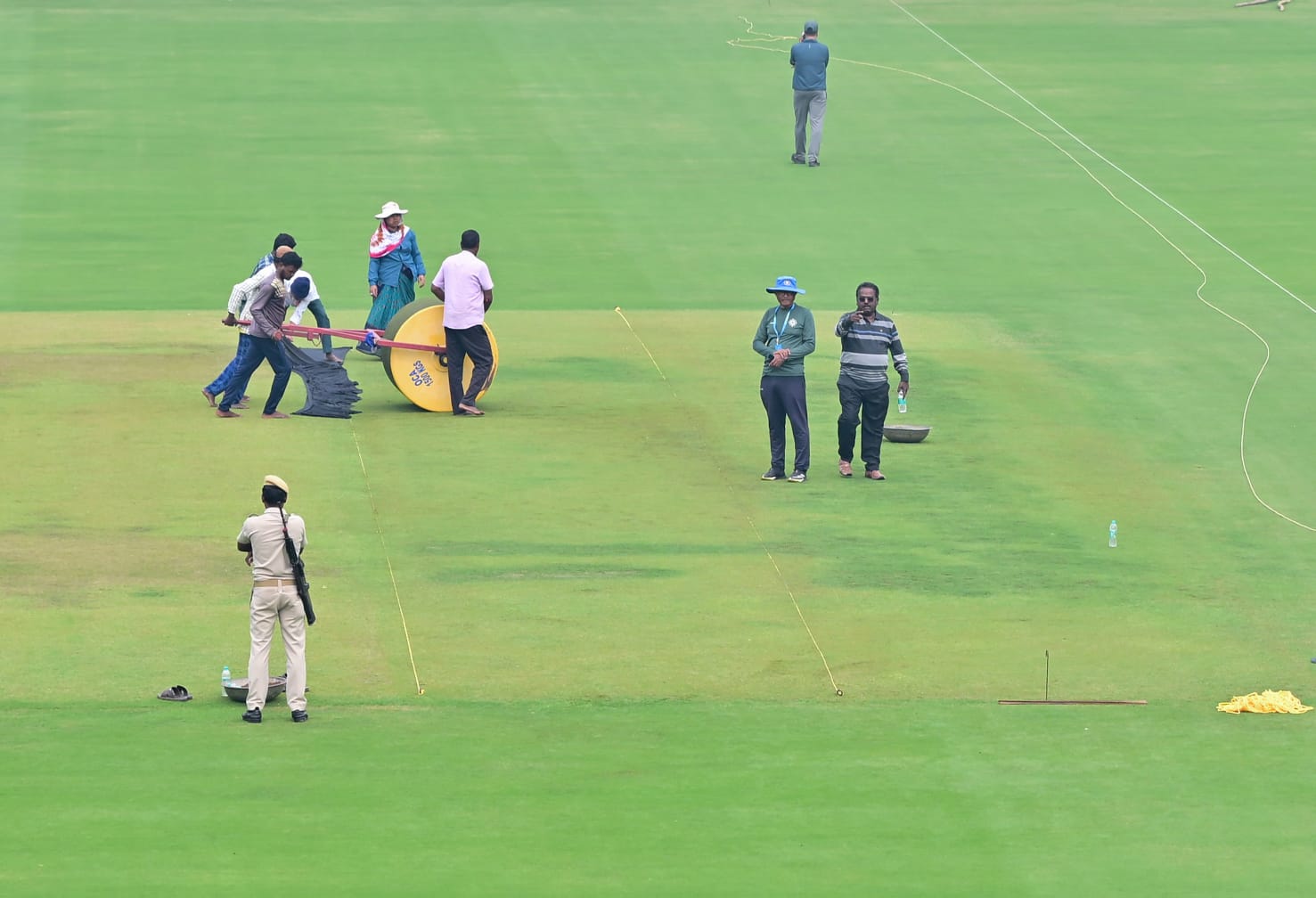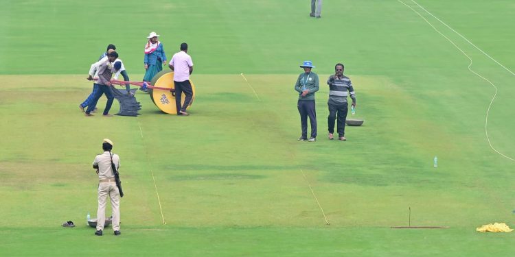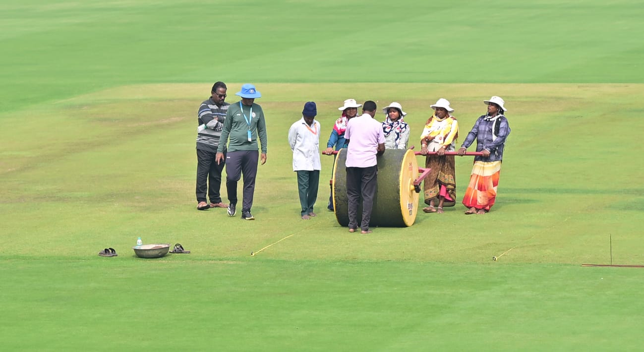 BCCI officials inspecting the pitch at Barabati Stadium in Cuttack ahead of the first T20 match between India and South Africa