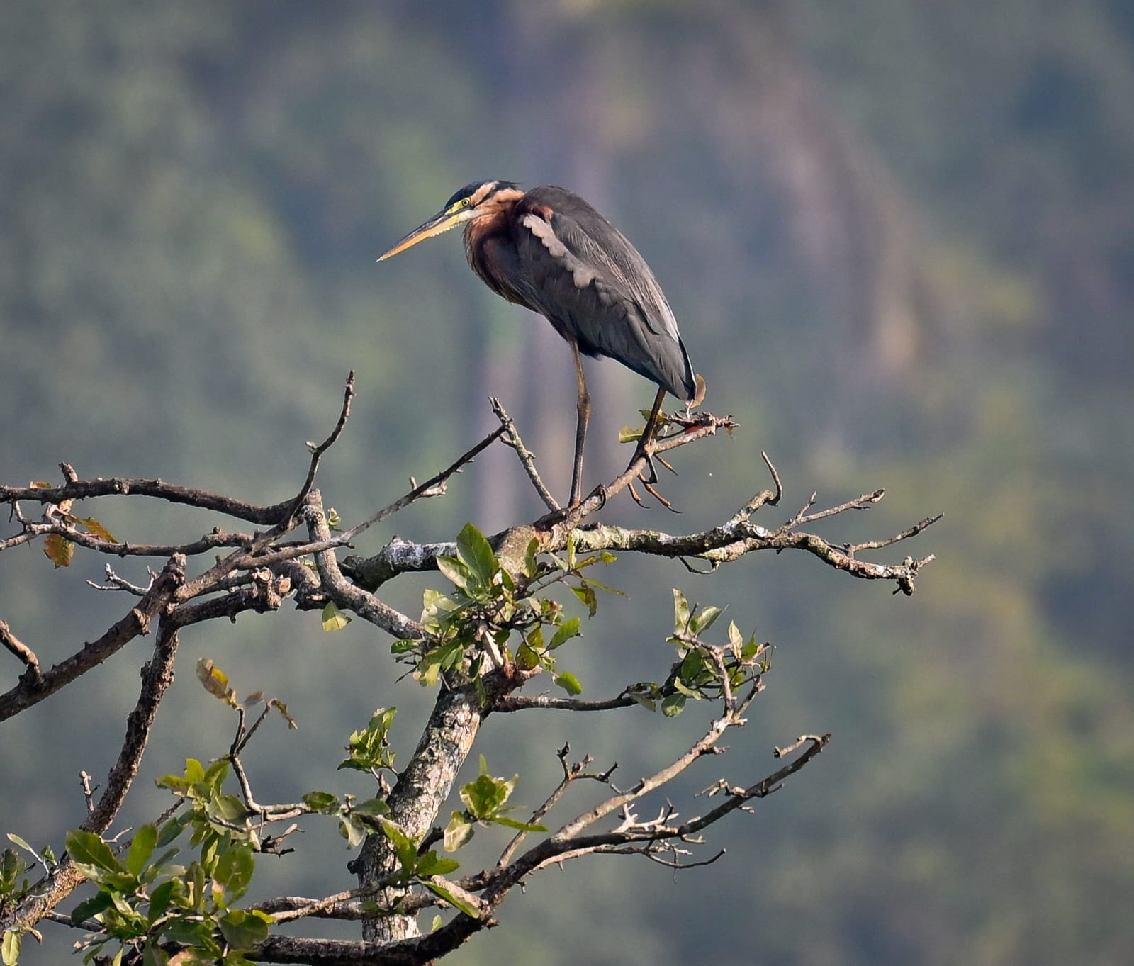 Bird perches on tree branch on a chilly morning at Nandankanan