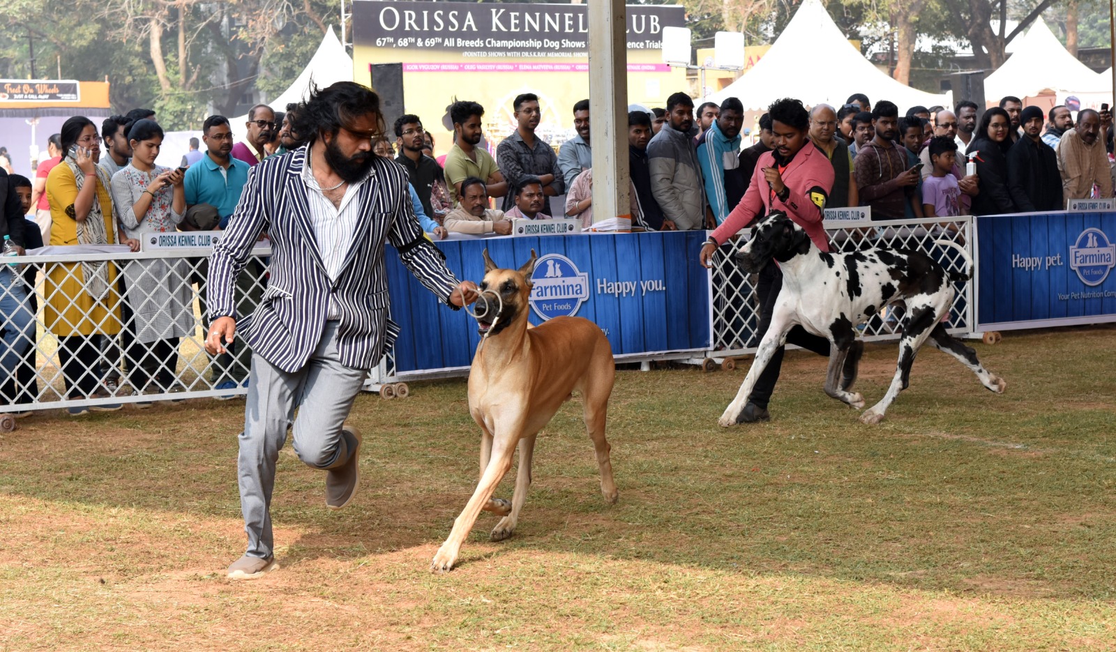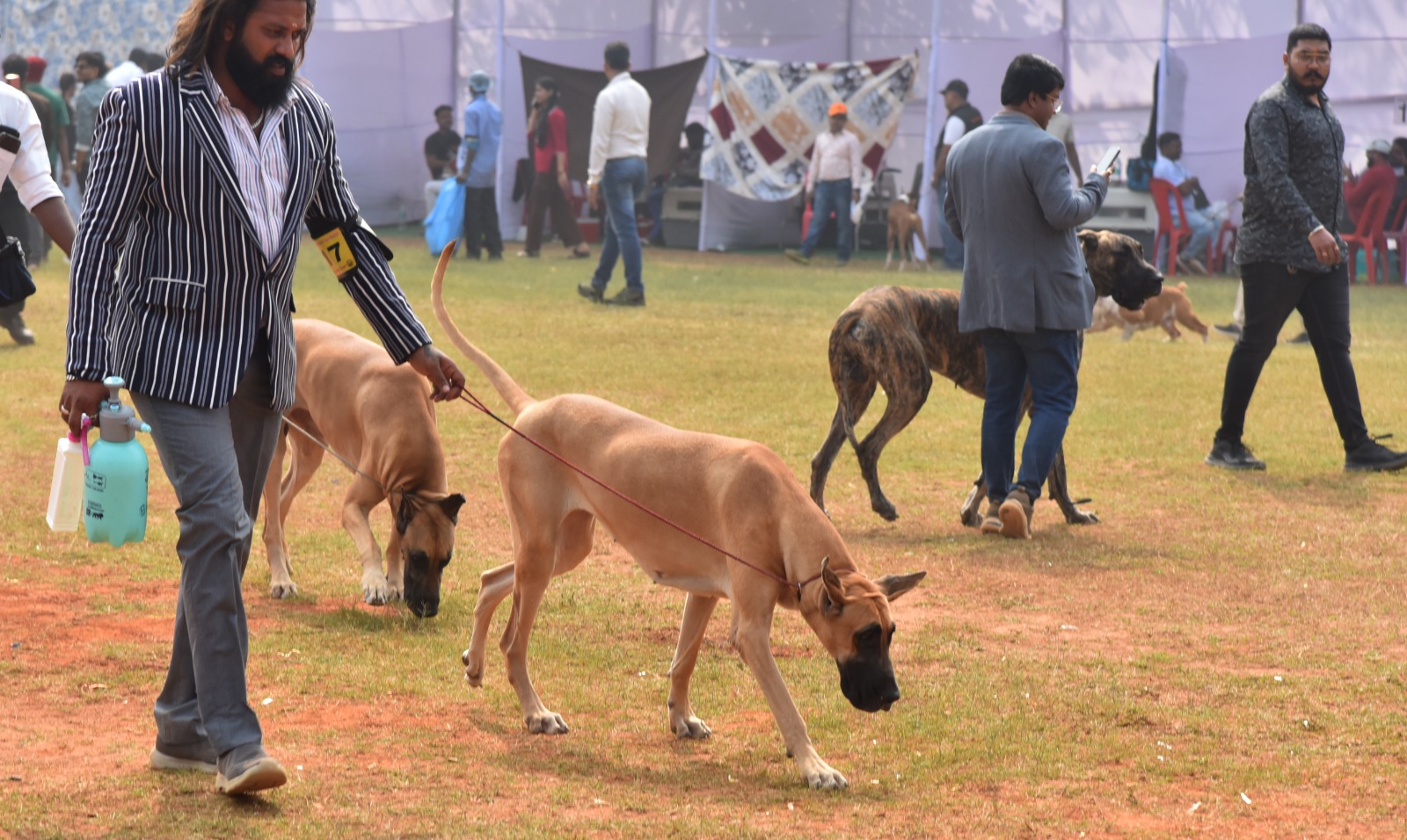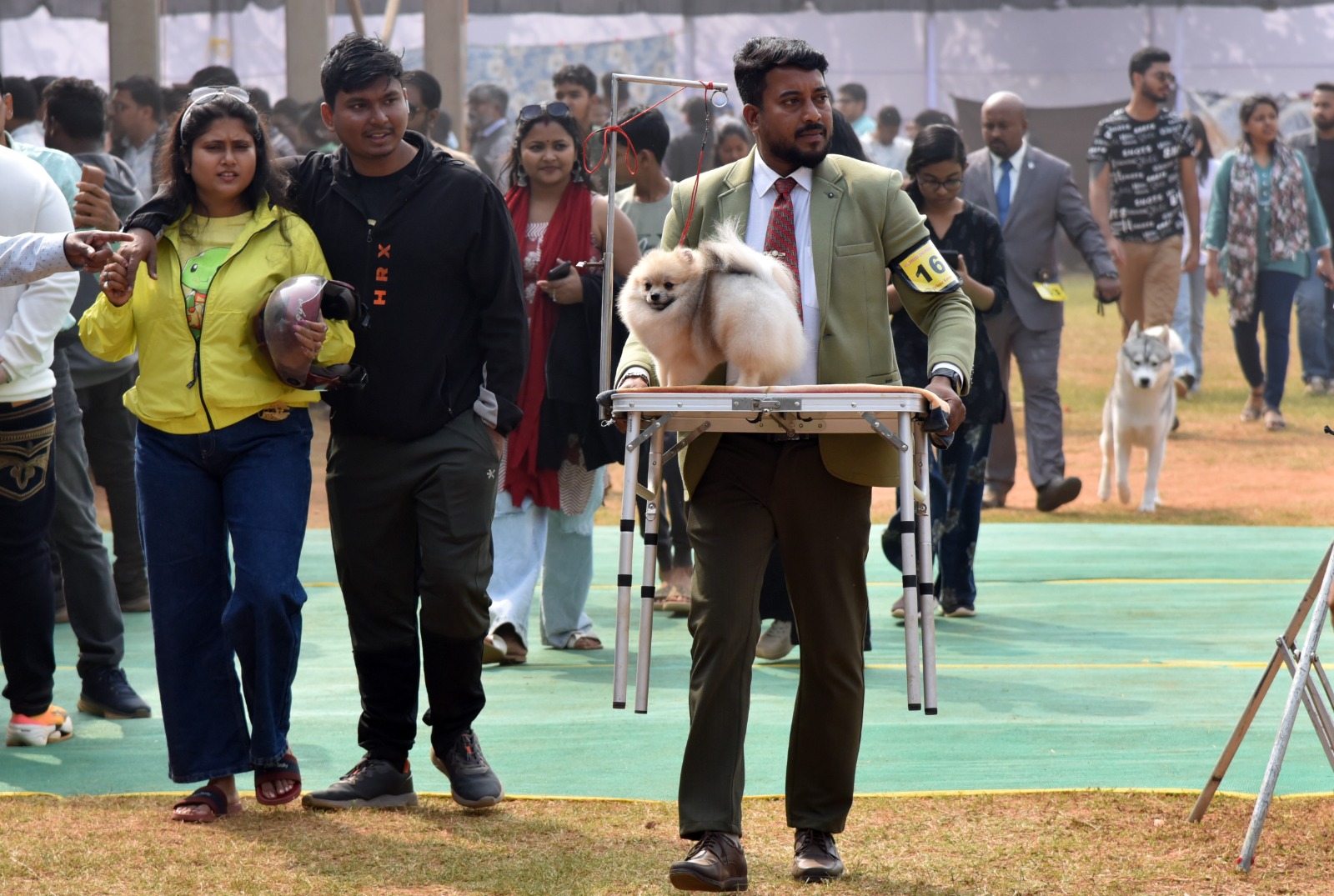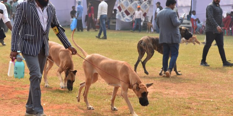 Dogs participate in show organised by the Orissa Kennel Club at OUAT Veterinary College ground in Bhubaneswar, Sunday