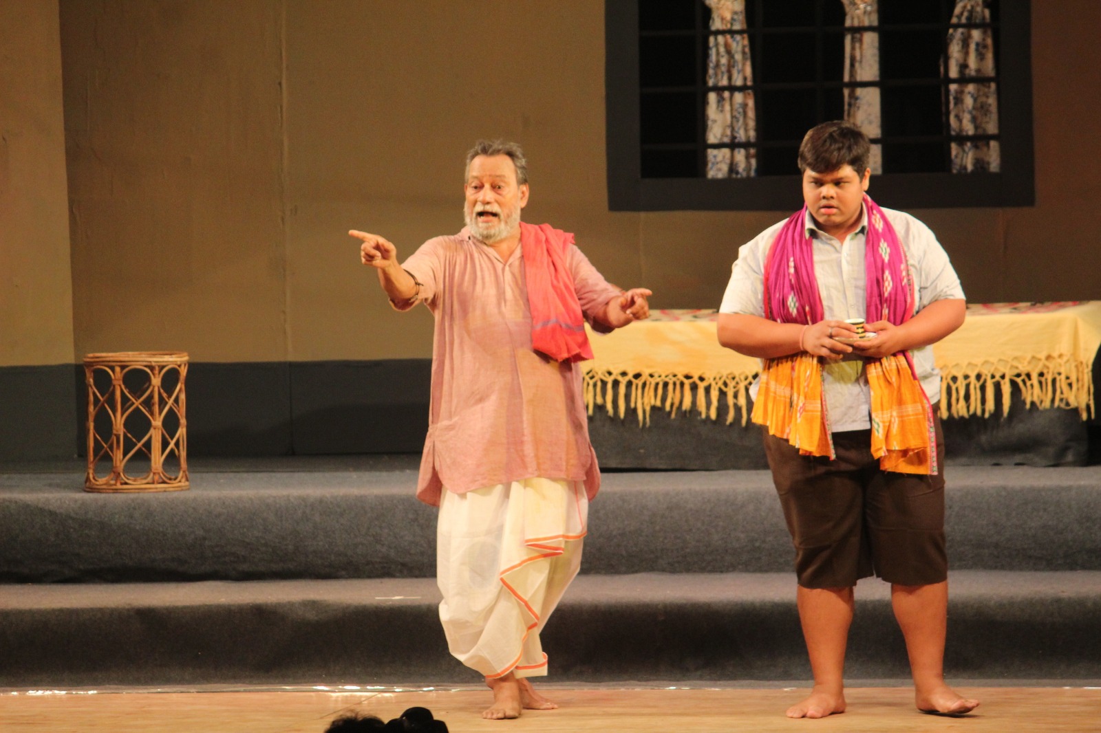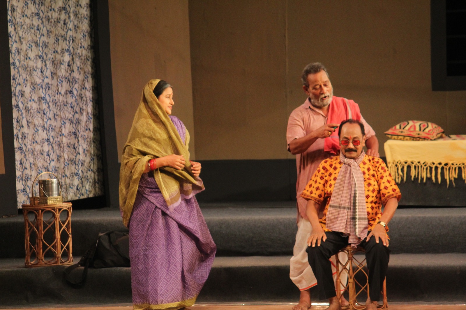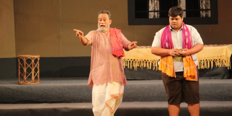 Artistes from ‘Manan Natya Sanstha’ perform a scene from play ‘Tinga Budha’ at Bhubaneswar’s Rabindra Mandap