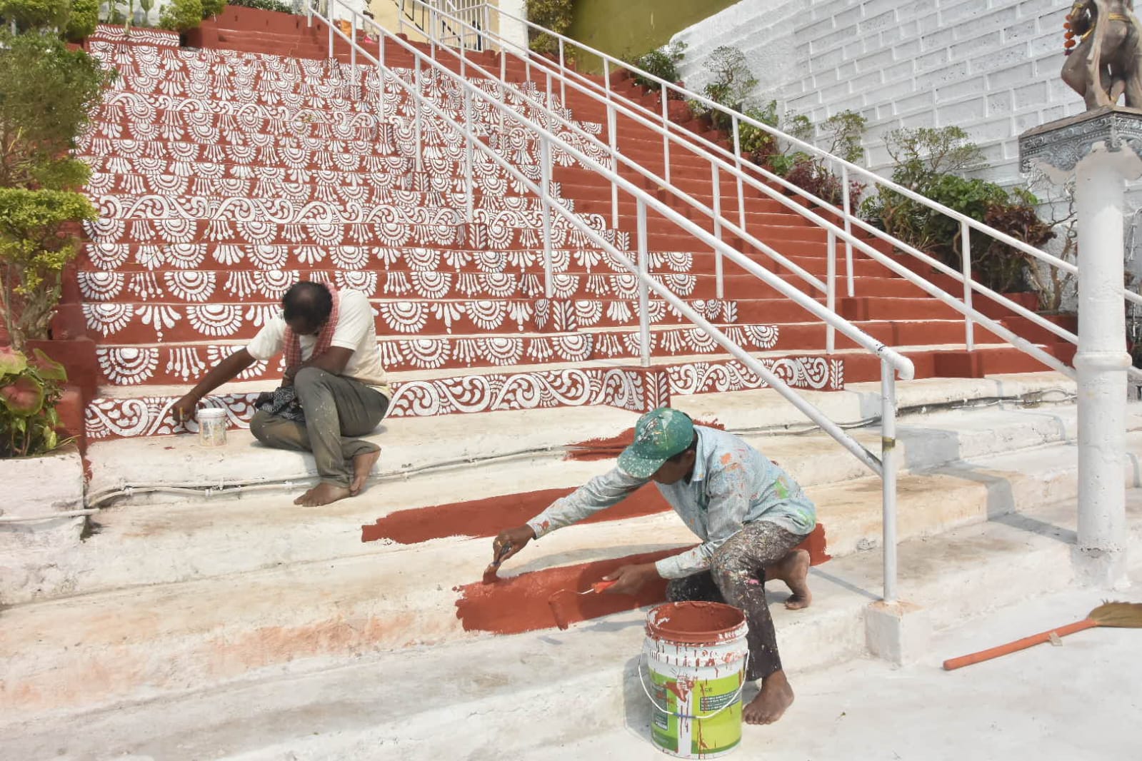 Beautification work underway at Puri’s Swetaganga Pushkarini ahead of the President’s visit
