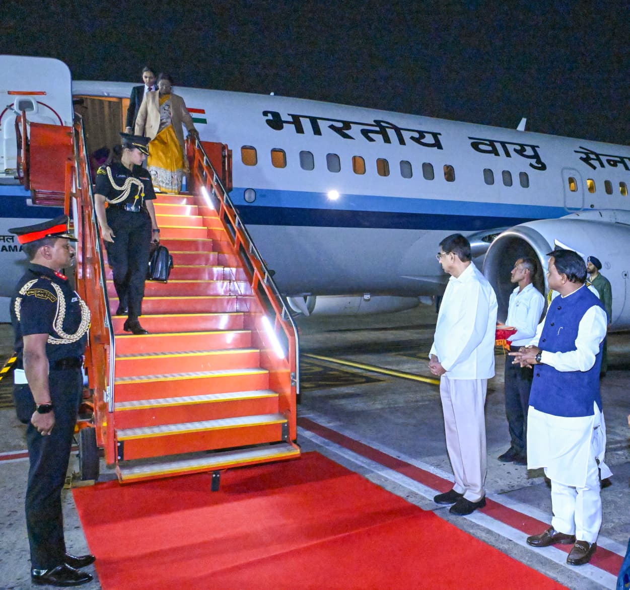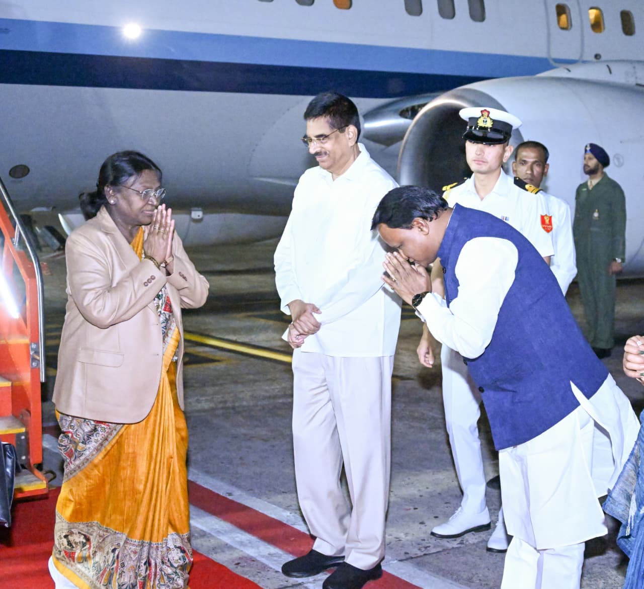President Droupadi Murmu arrives in Bhubaneswar at Biju Patnaik International Airport for her six-day Odisha visit; received by Governor Hari Babu Kambhampati and Chief Minister Mohan Charan Majhi