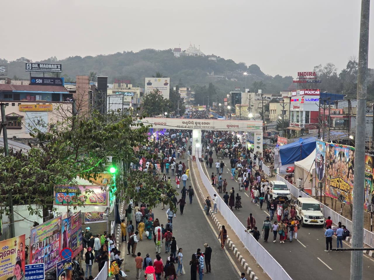 A large crowd gathers at the Khandagiri Mela, as visitors throng the fairgrounds to soak in the festive atmosphere