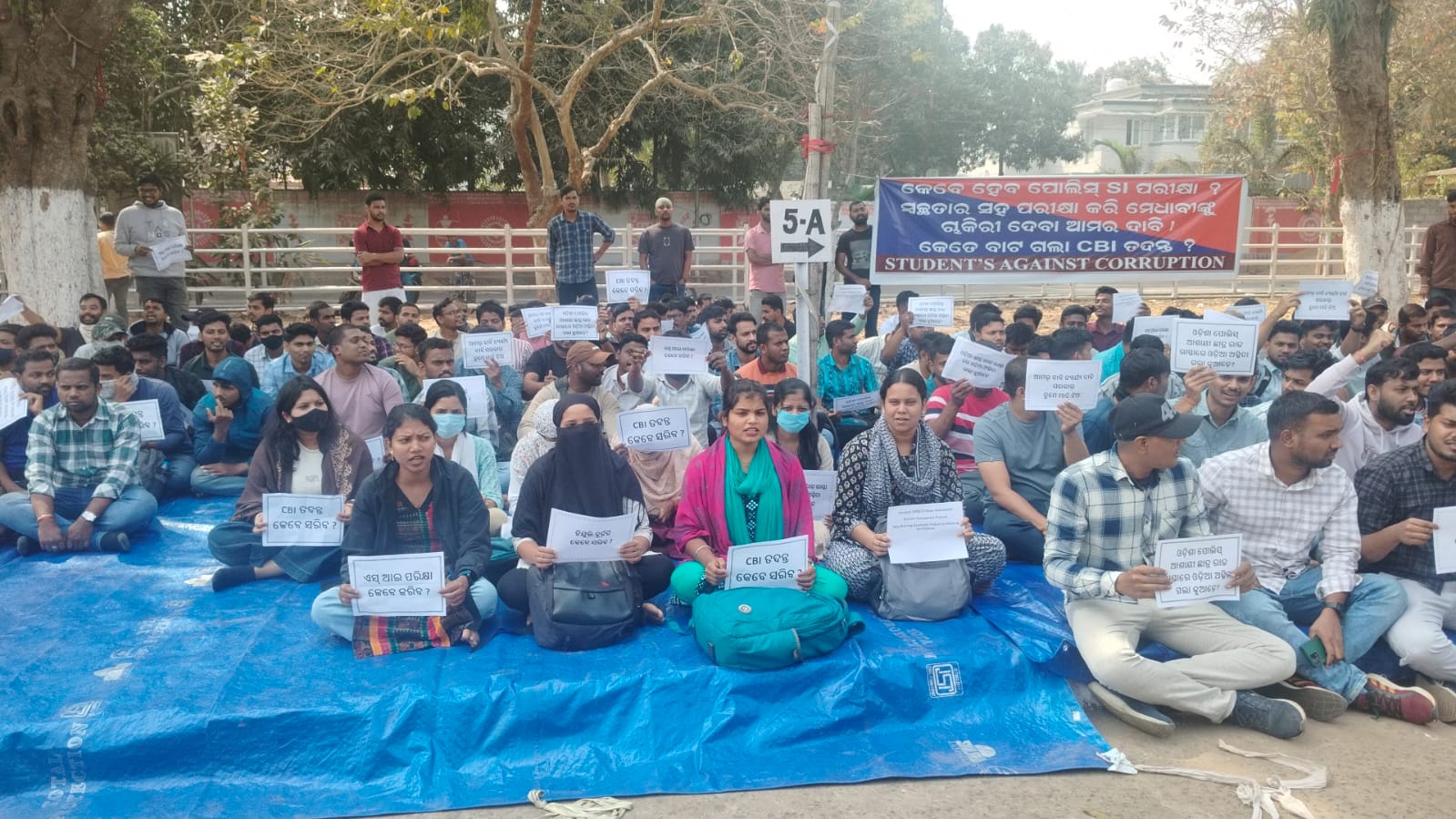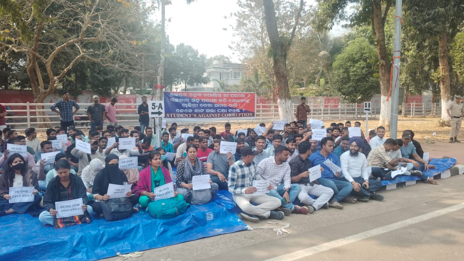 Students stage protest at PMG Square seeking CBI probe into Police SI exam irregularities in Bhubaneswar