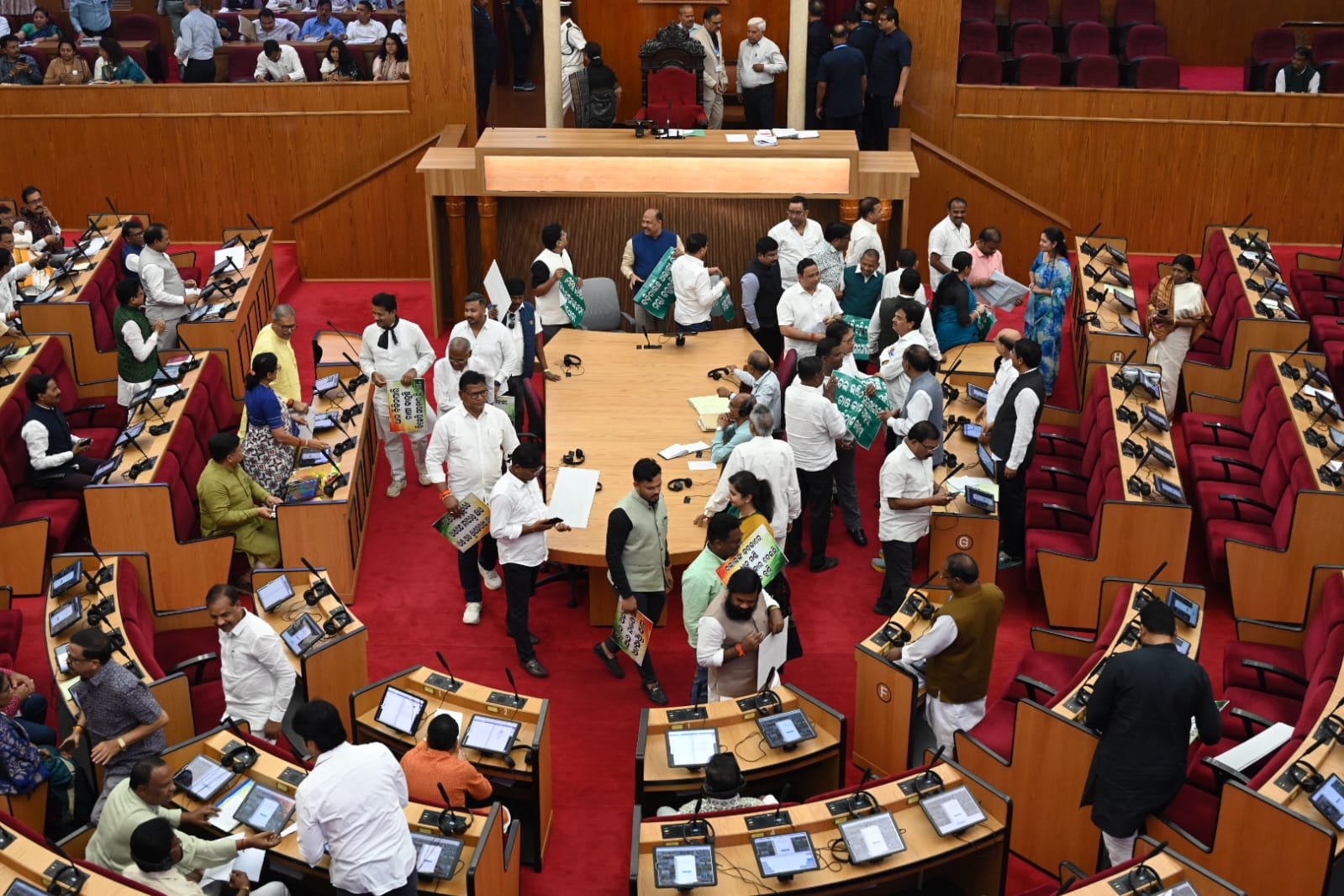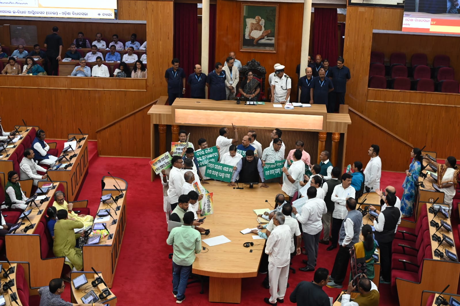 Odisha Assembly witnesses pandemonium as Opposition BJD, Congress MLAs create ruckus over alleged mismanagement in paddy procurement