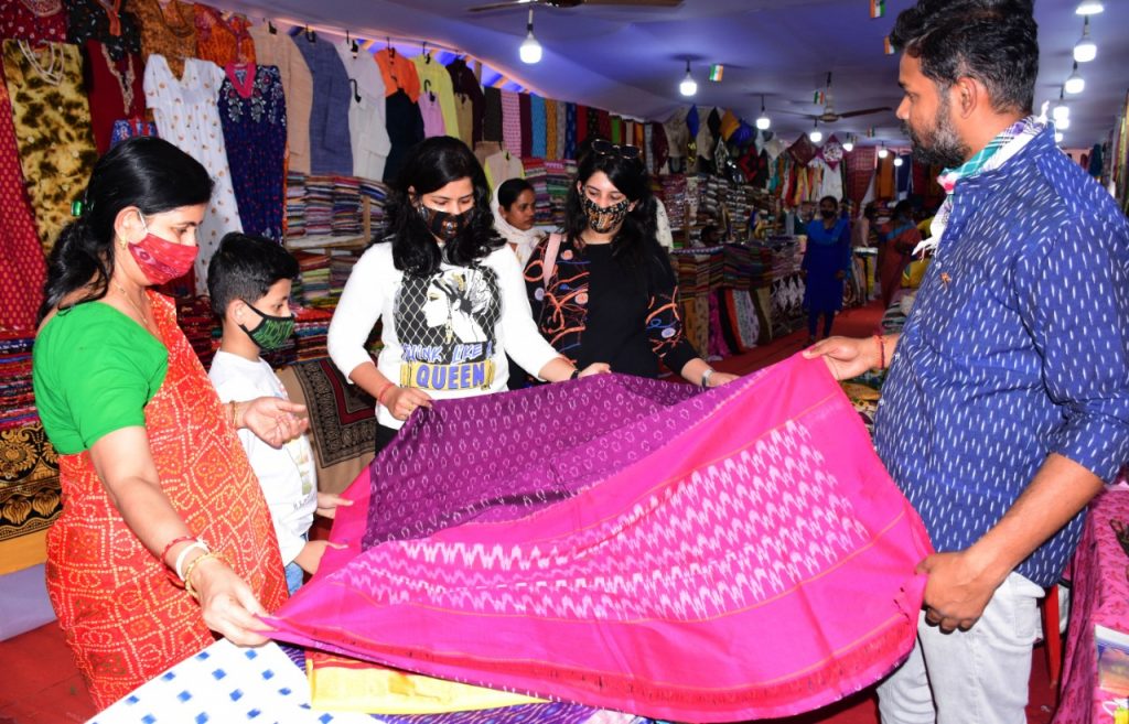 Shoppers check out garments at national-level Handloom Expo being held at Exhibition Ground in Bhubaneswar