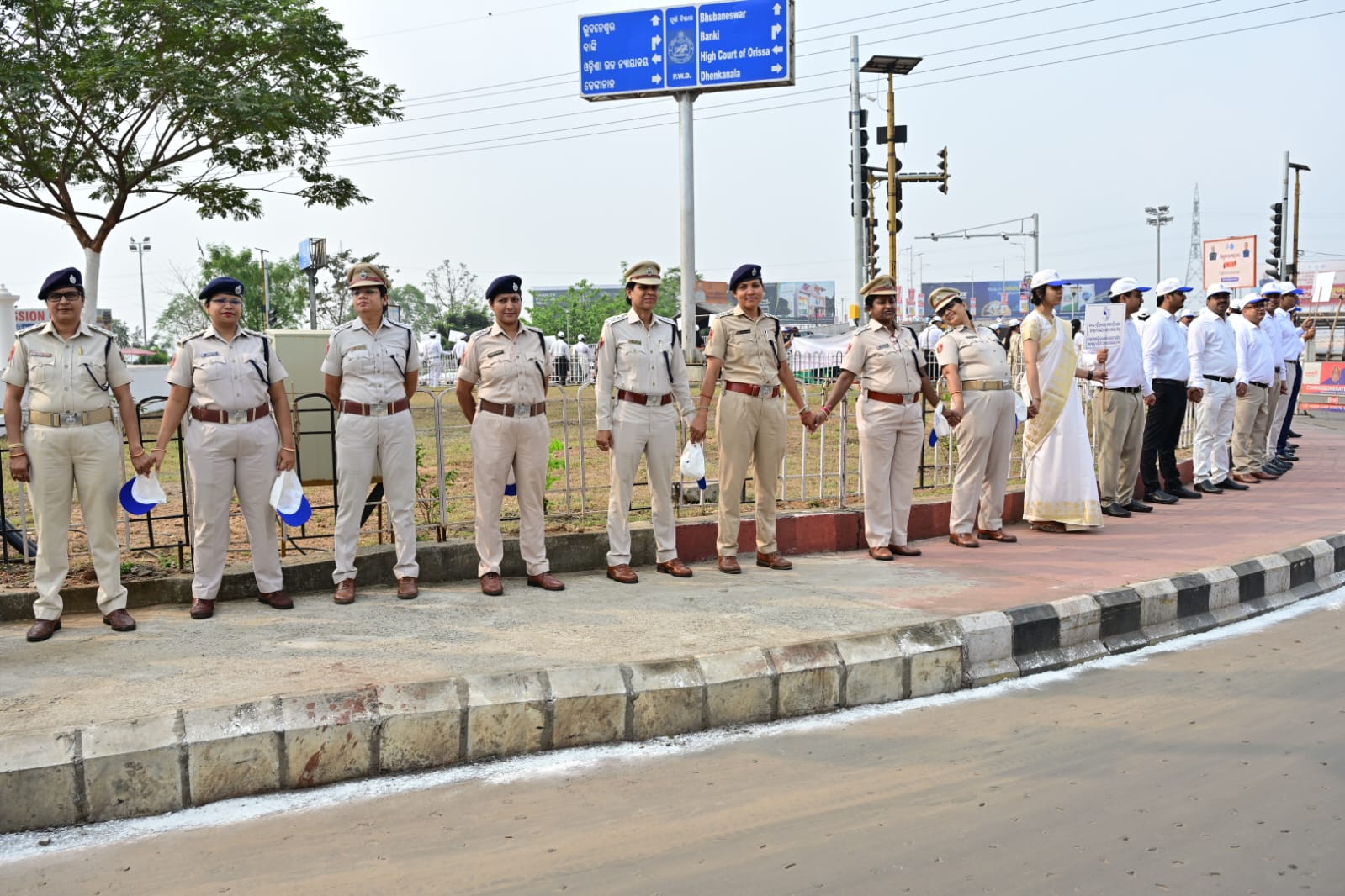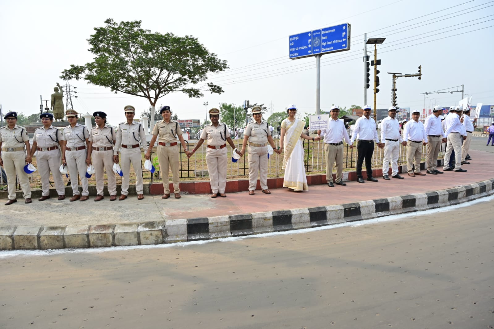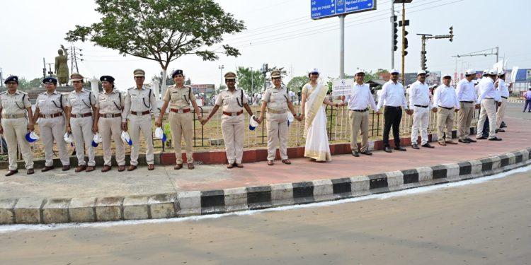 Judges of Orissa High Court, judicial officials, women police officers participate in human chain organised by Odisha State Legal Services Authority on occasion of International Women’s Day at Belview Chhak in Cuttack