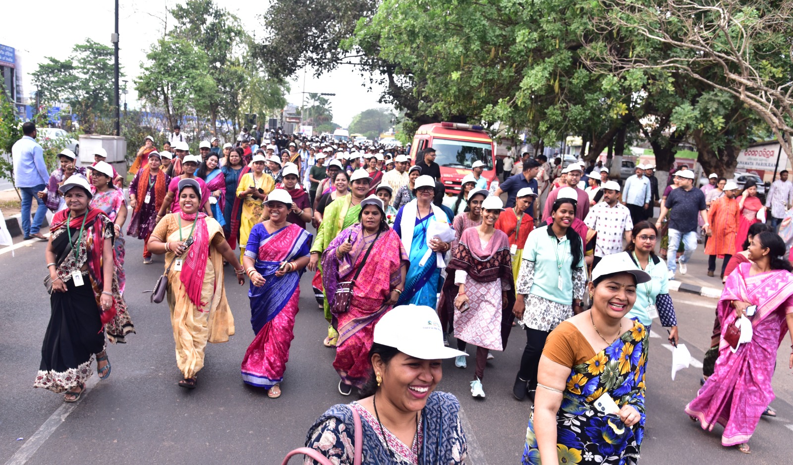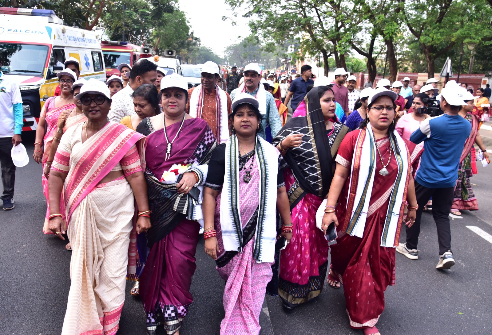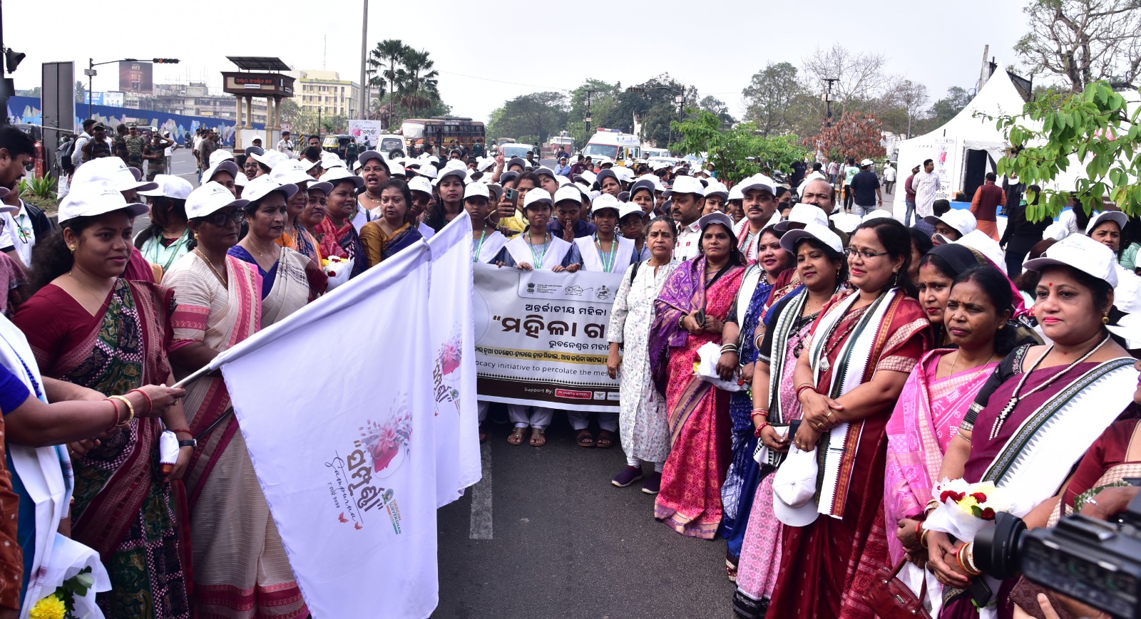 Participants take part in marathon rally from Master Canteen Square to Bhubaneswar Municipal Corporation office on occasion of International Women’s Day in Bhubaneswar