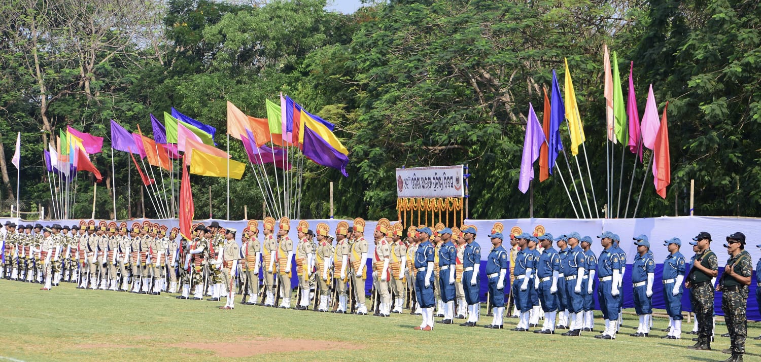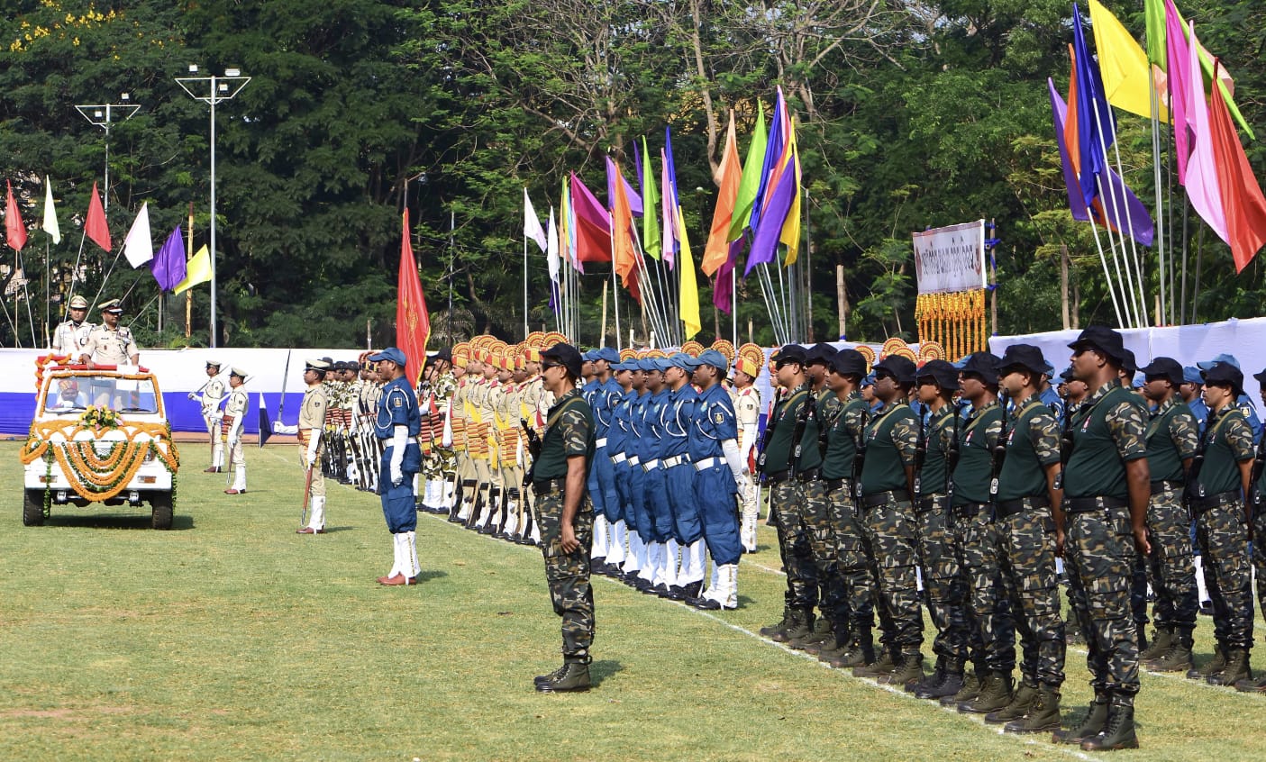 Police personnel take part in 91st Police Formation Day celebrations at Reserve Ground, Bhubaneswar