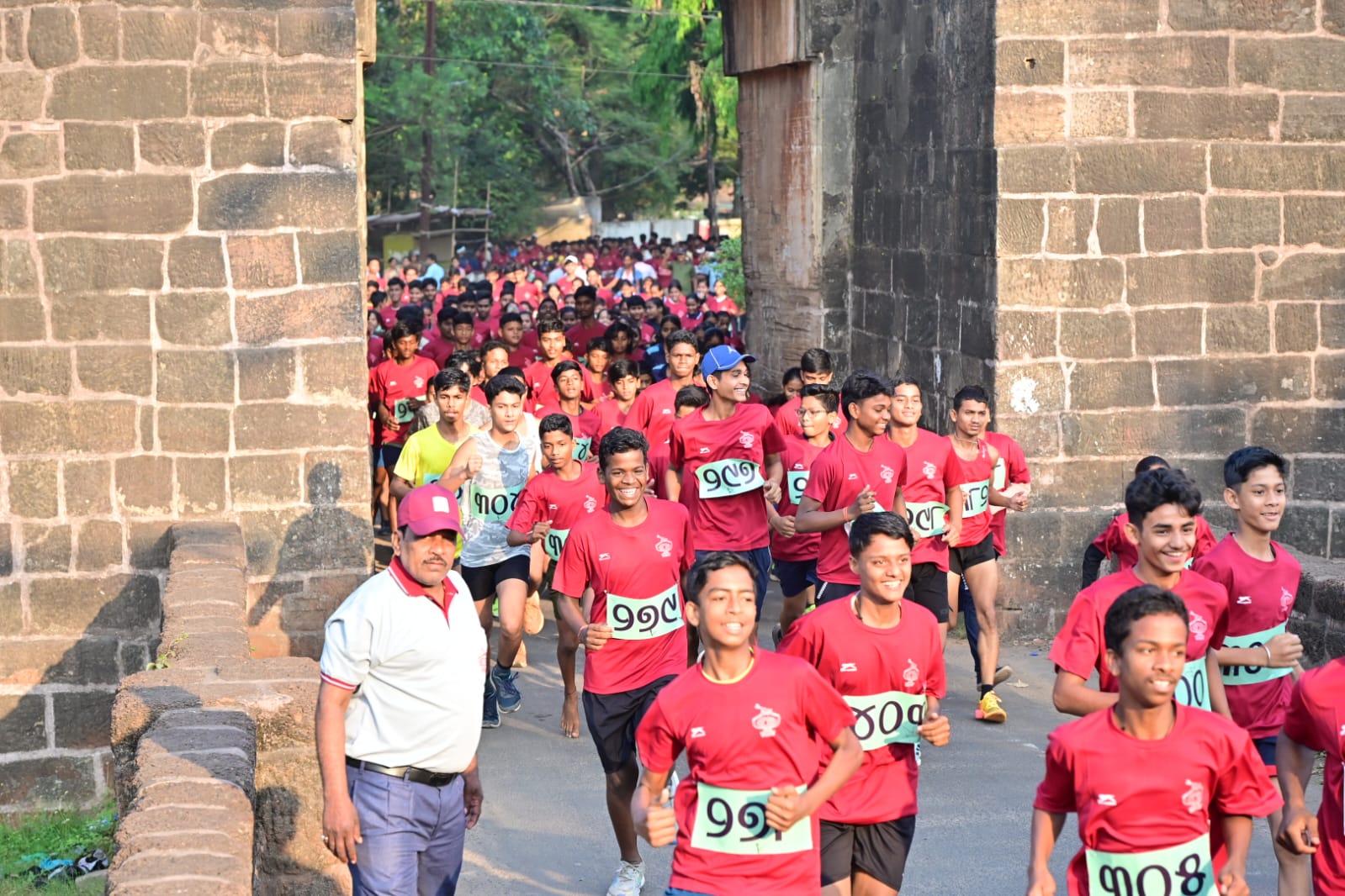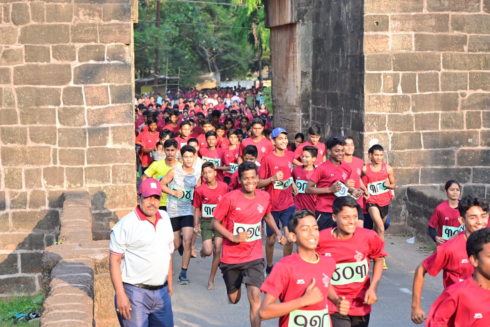 Participants take part in mass run organised by District Sports Council near Barabati Durga to mark Utkal Divas, Cuttack
