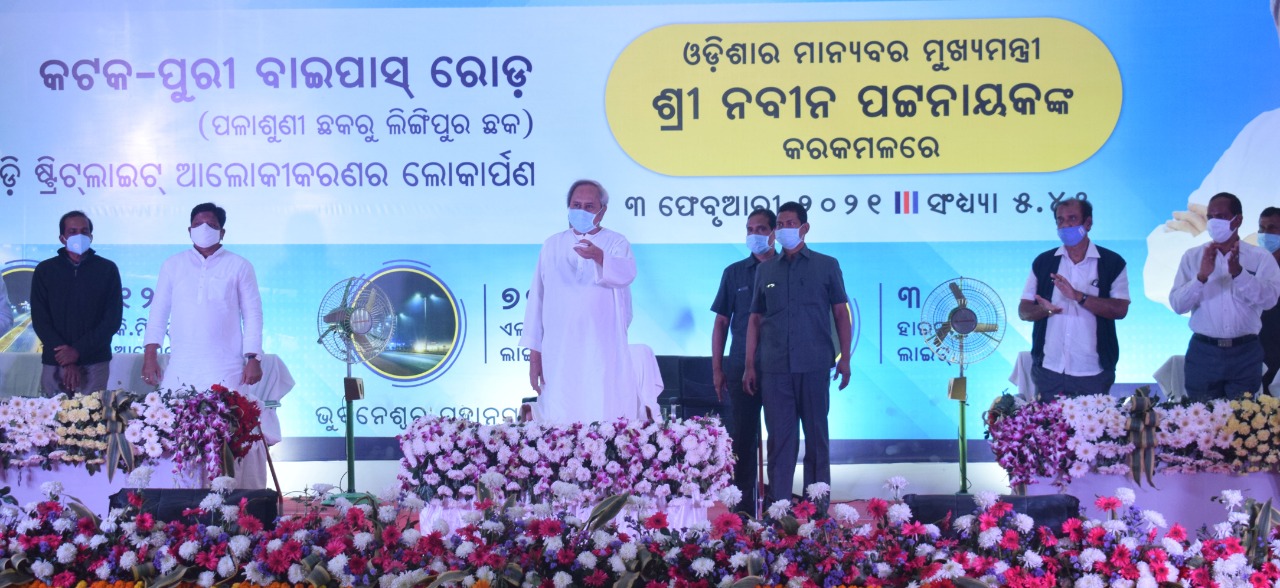 Chief Minister Naveen Patnaik inaugurates LED streetlight system on Cuttack-Puri bypass in Bhubaneswar