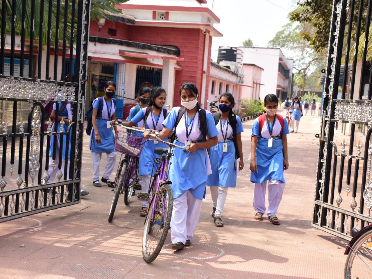 As temperature soars in Bhubaneswar, students of Unit-II Capital Girls’ High School leave school after attending the morning classes