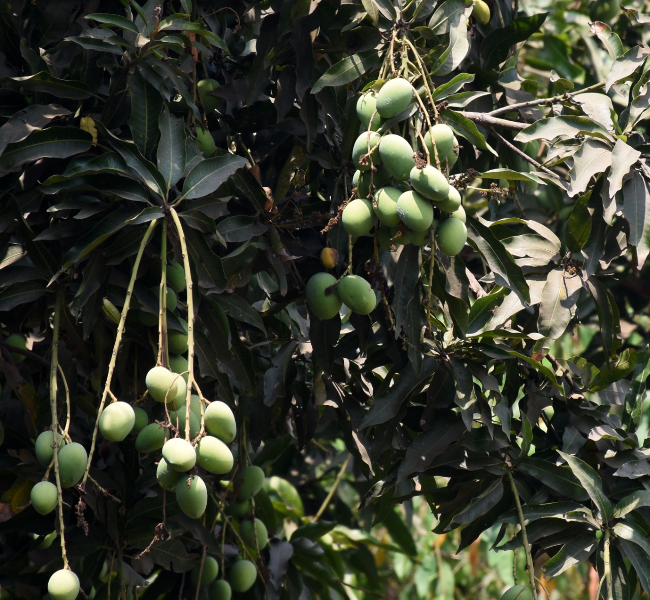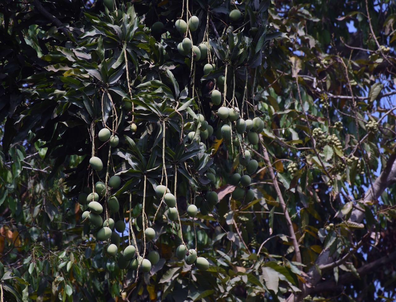 Green mangoes adding to the beauty of a tree at the PMG road in Bhubaneswar