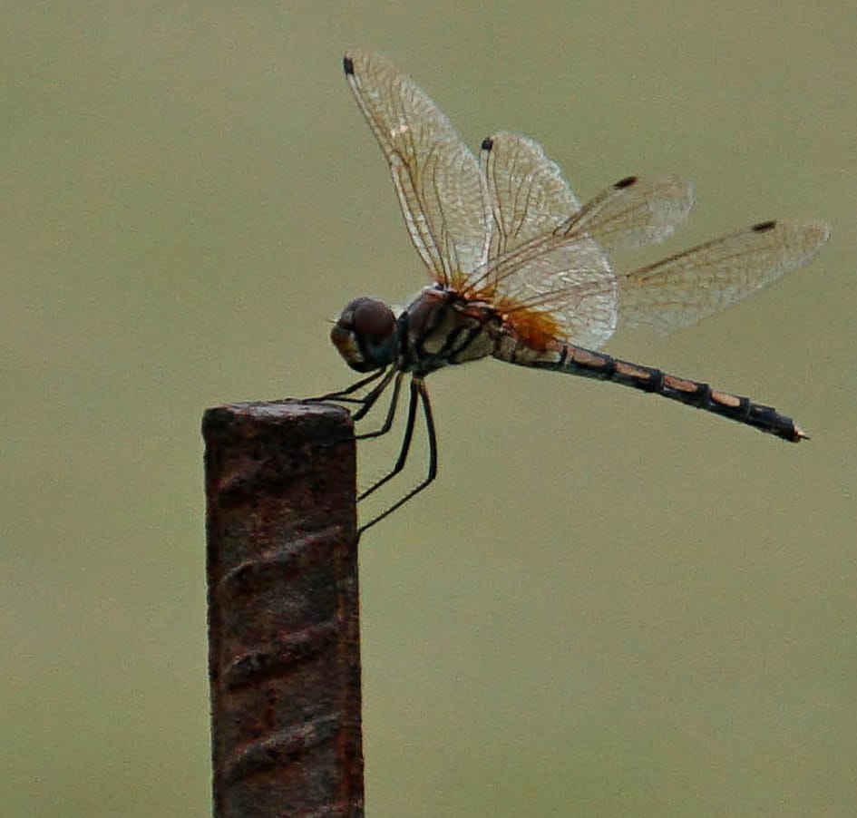 Dragonfly rests atop a steel rod