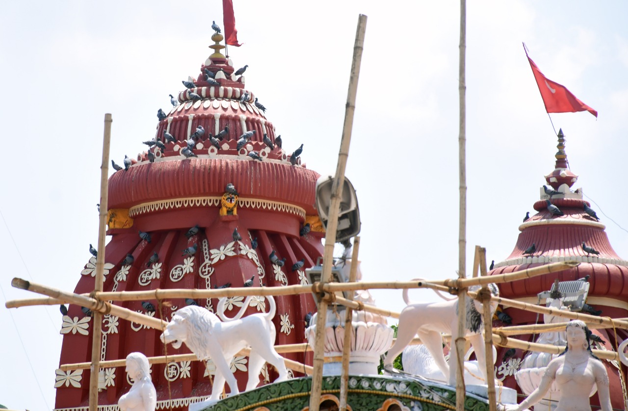 With no food and shelter, pigeons sit on the porch of Ram Mandir.